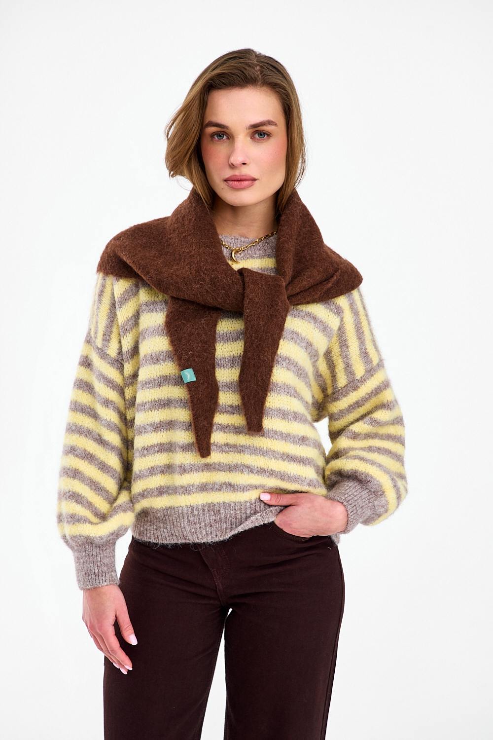 Apaszka Alpaca Espresso to propozycja dla miłośniczek kolorów ziemi. Czekoladowy brąz pięknie współgra z beżami, kremami i zielenią, tworząc spójną całość. Wykonana z dzianiny o ciekawej fakturze, nie tylko grzeje, ale też stanowi modny element dekoracyjny.