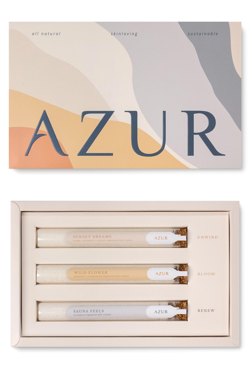 Zestaw upominkowy Bathtime Stories zawiera trzy luksusowe sole do kąpieli w eleganckich szklanych tubkach. Każda mieszanka została stworzona z tłoczonego na zimno oleju migdałowego, czystych soli magnezowych i w 100% naturalnych olejków eterycznych – dla idealnej chwili relaksu w domu.