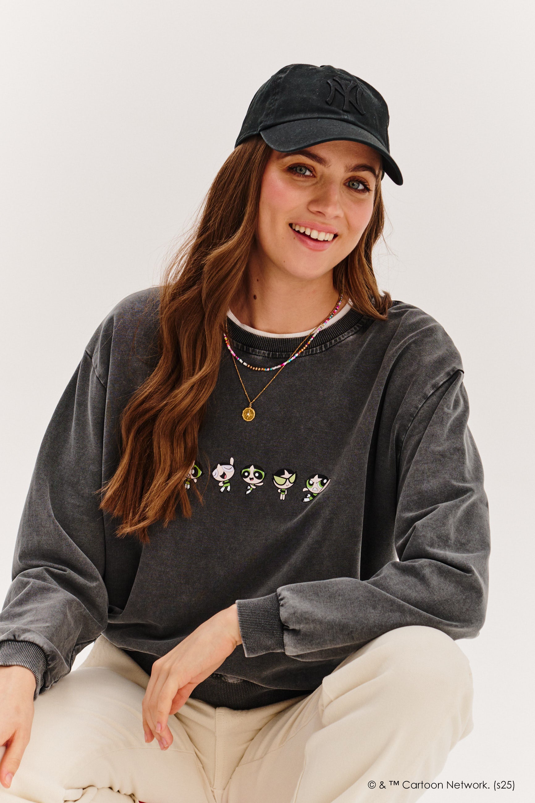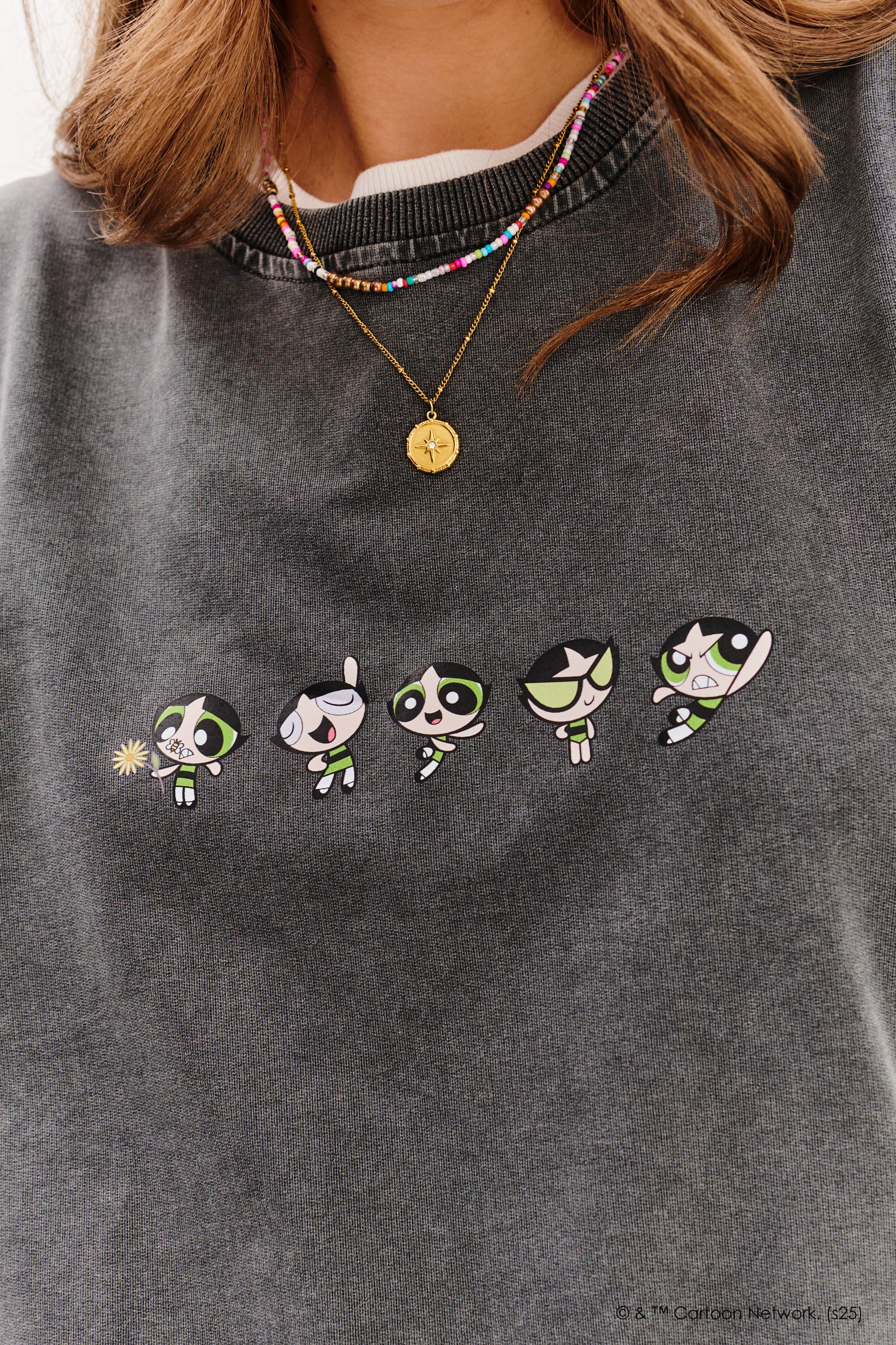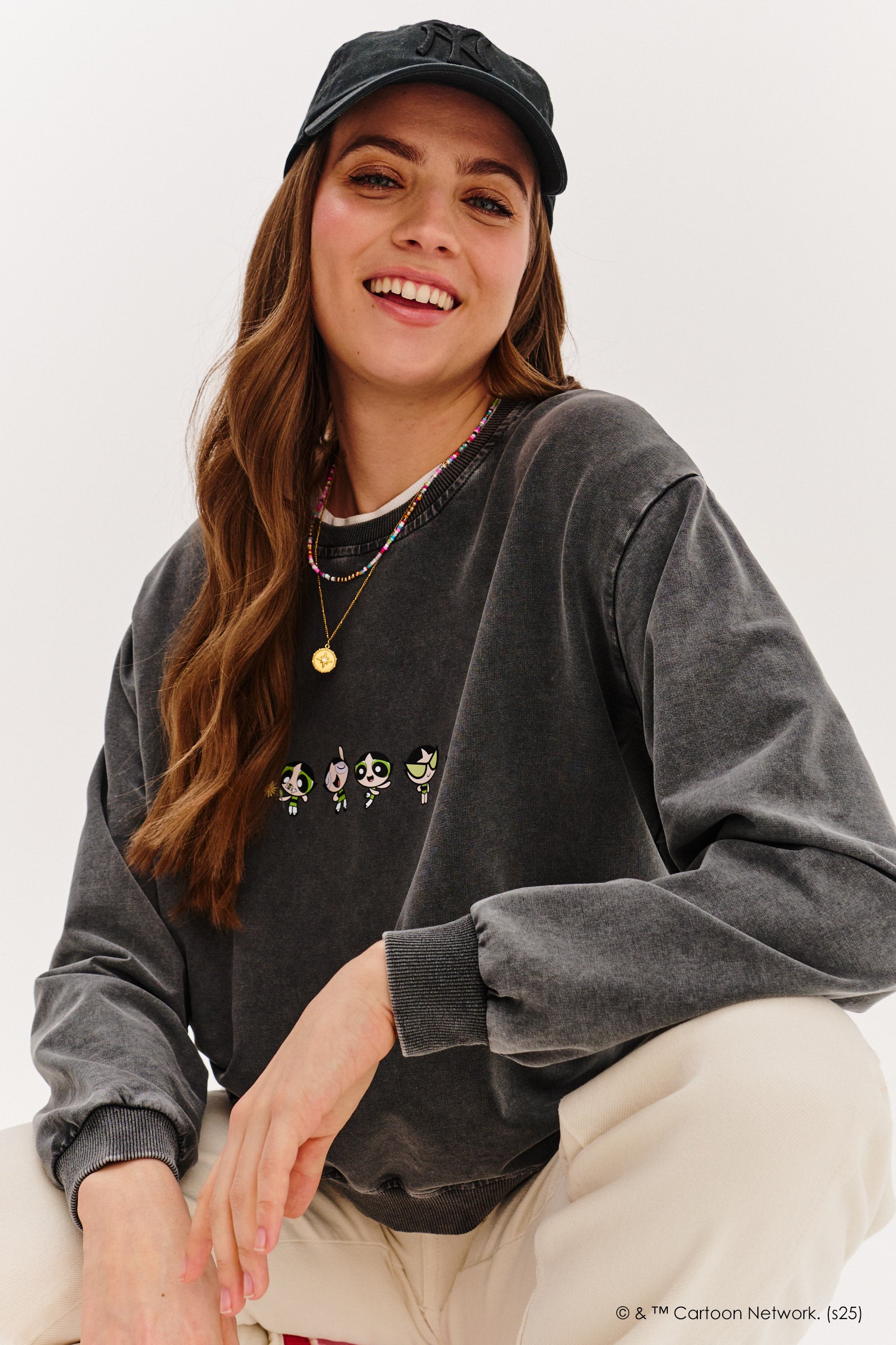 Bluza Buttercup in Bloom – postaw na klasyczny kolor z wyjątkową grafiką! Czarno-szara, sprana bluza z haftami Buttercup to propozycja dla dziewczyn, które lubią łączyć siłę z luzem. Cztery ujęcia najbardziej zadziornej z Atomówek idealnie oddają jej charakter – niezależność, odwaga i szczypta niegrzecznego uroku.