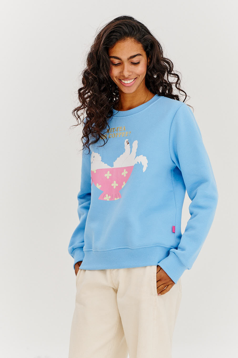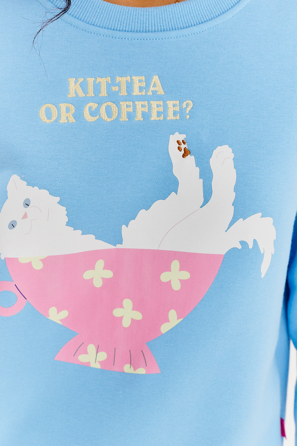 Bluza Cup of Whiskers – dla miłośniczek ciepła, kotów i herbacianych rytuałów! Otul się w miękką, stylową bluzę inspirowaną uroczymi kocimi towarzyszami. Na przodzie znajdziesz haftowany napis „KIT-TEA OR COFFEE?” oraz ilustrację słodkiego kota w filiżance, która doda Twojej stylizacji nutę humoru i beztroski.