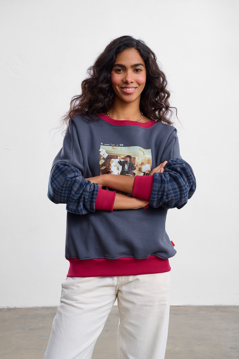 Bluza Dear Potter to nostalgiczna podróż do świata magii. Szary przód i tył bluzy zestawiony jest z rękawami w ciemną kratę, co nadaje jej charakteru vintage i stylu "dark academia". Czerwone ściągacze dodają jej energii i nawiązują do motywu pieczęci na listach.