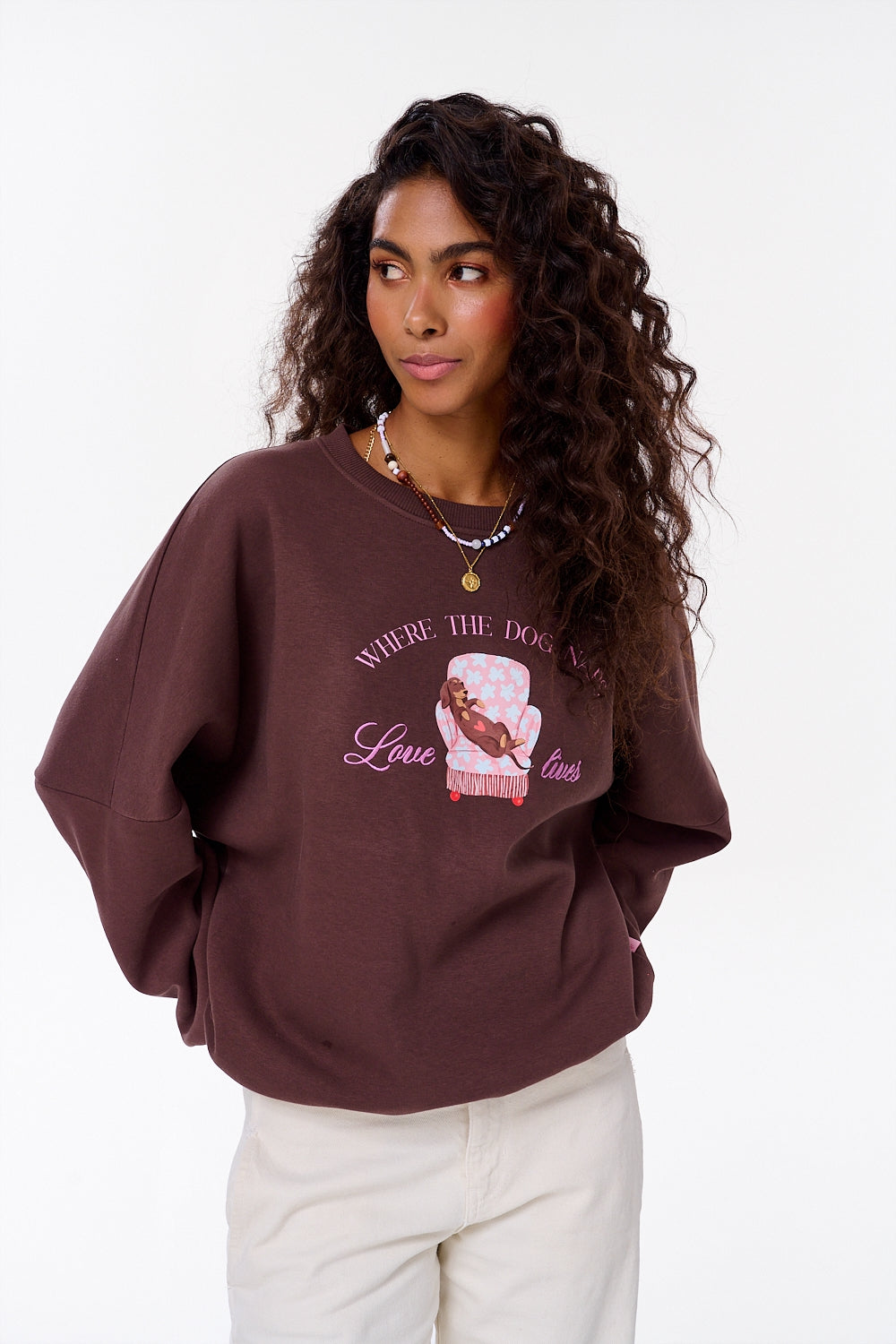 Bluza Dog Naps to miękki, oversize'owy model, który łączy wygodę z uroczym przekazem. Na przodzie znajdziesz grafikę psa odpoczywającego na fotelu z hasłem „Where the dog naps, love lives", które przypomina, że prawdziwe ciepło domu tworzą małe chwile i wierni towarzysze.