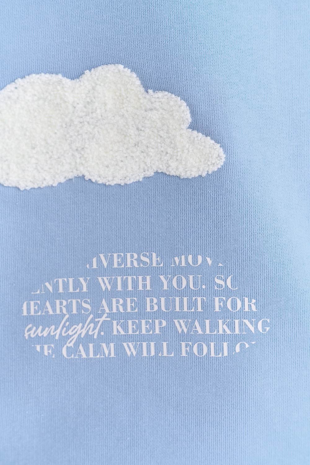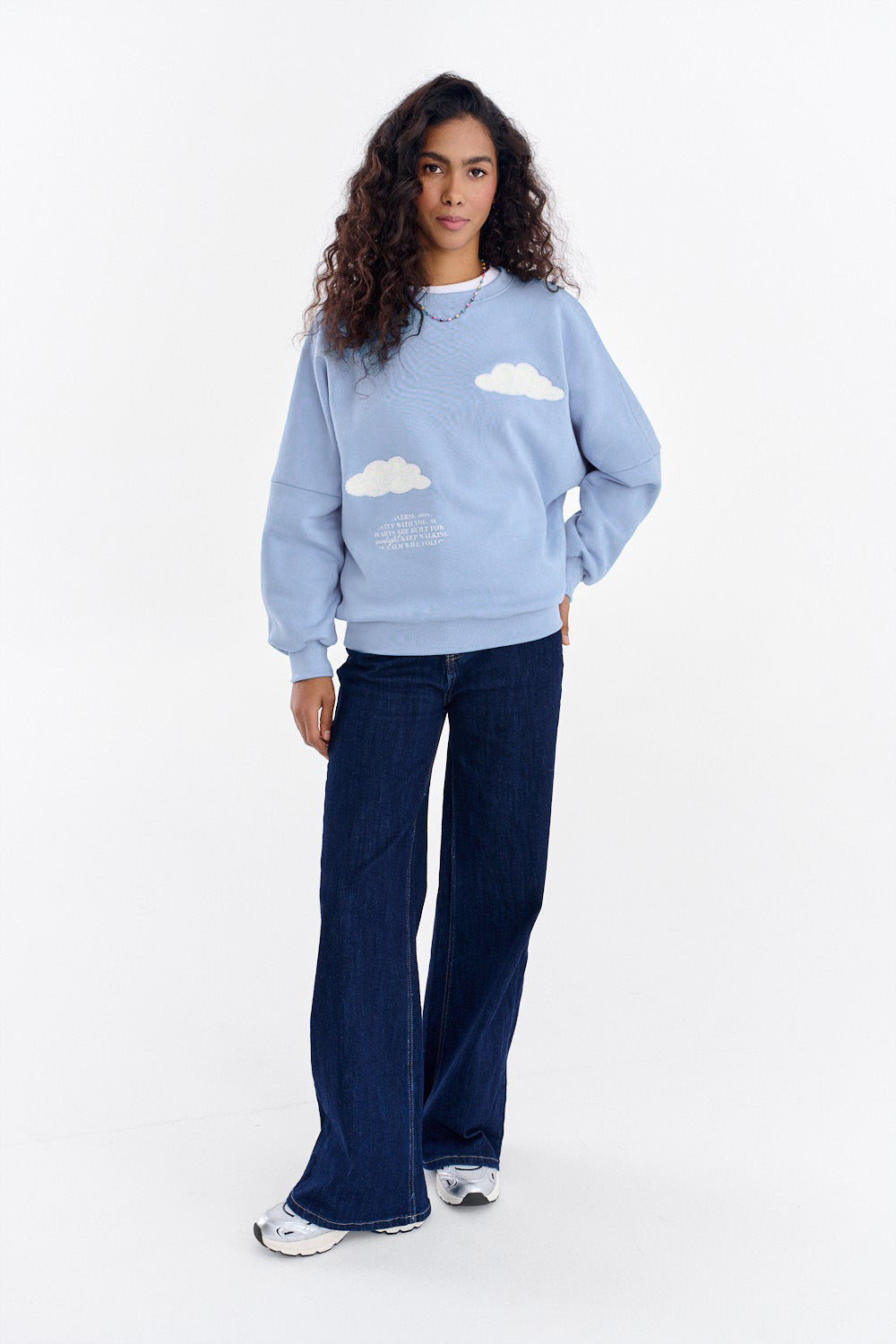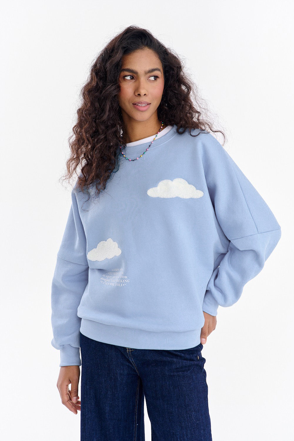 Uroku dodają jej wyjątkowe detale: haftowane aplikacje w kształcie chmur. Szerokie ściągacze przy rękawach i na dole bluzy świetnie trzymają formę. Noś ją do legginsów, jeansów lub dresowych szortów i poczuj ten "dreamy vibe".