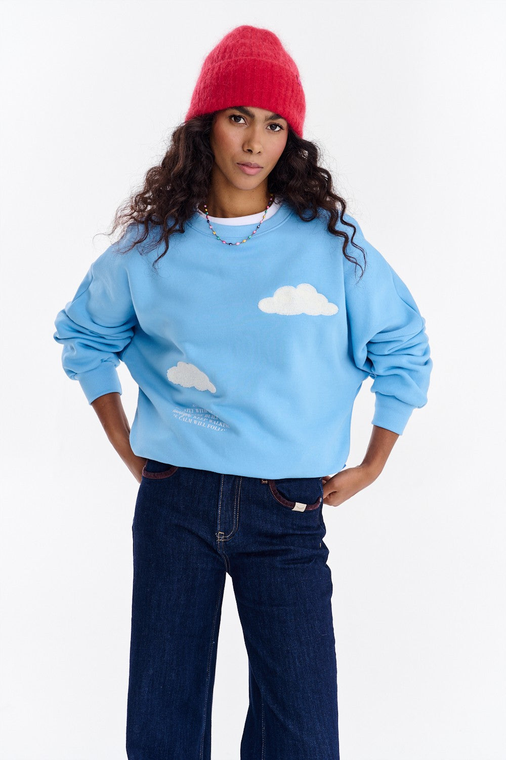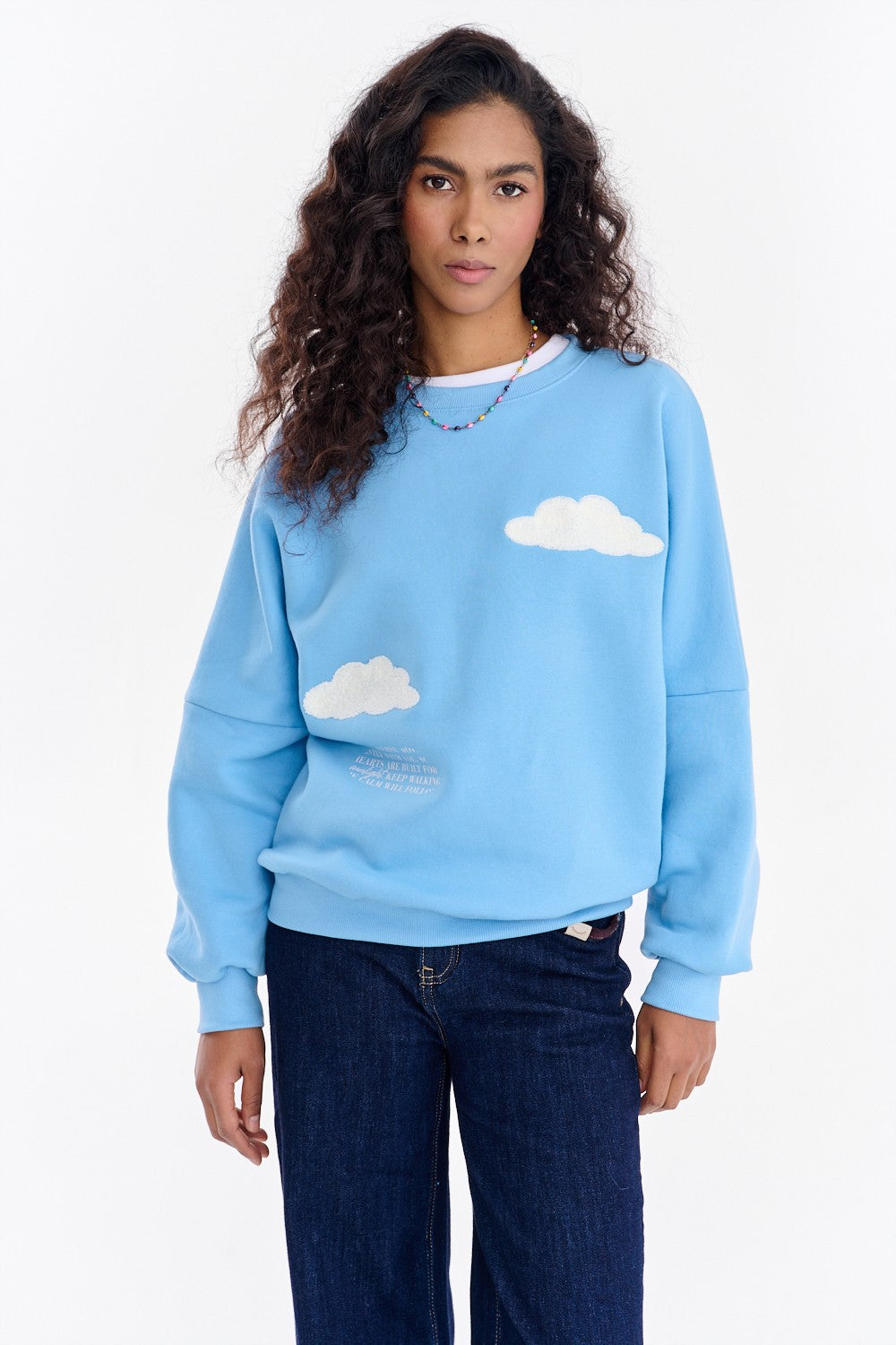 Uroku dodają jej wyjątkowe detale: haftowane aplikacje w kształcie chmur. Szerokie ściągacze przy rękawach i na dole bluzy świetnie trzymają formę. Noś ją do legginsów, jeansów lub dresowych szortów i poczuj ten "dreamy vibe".