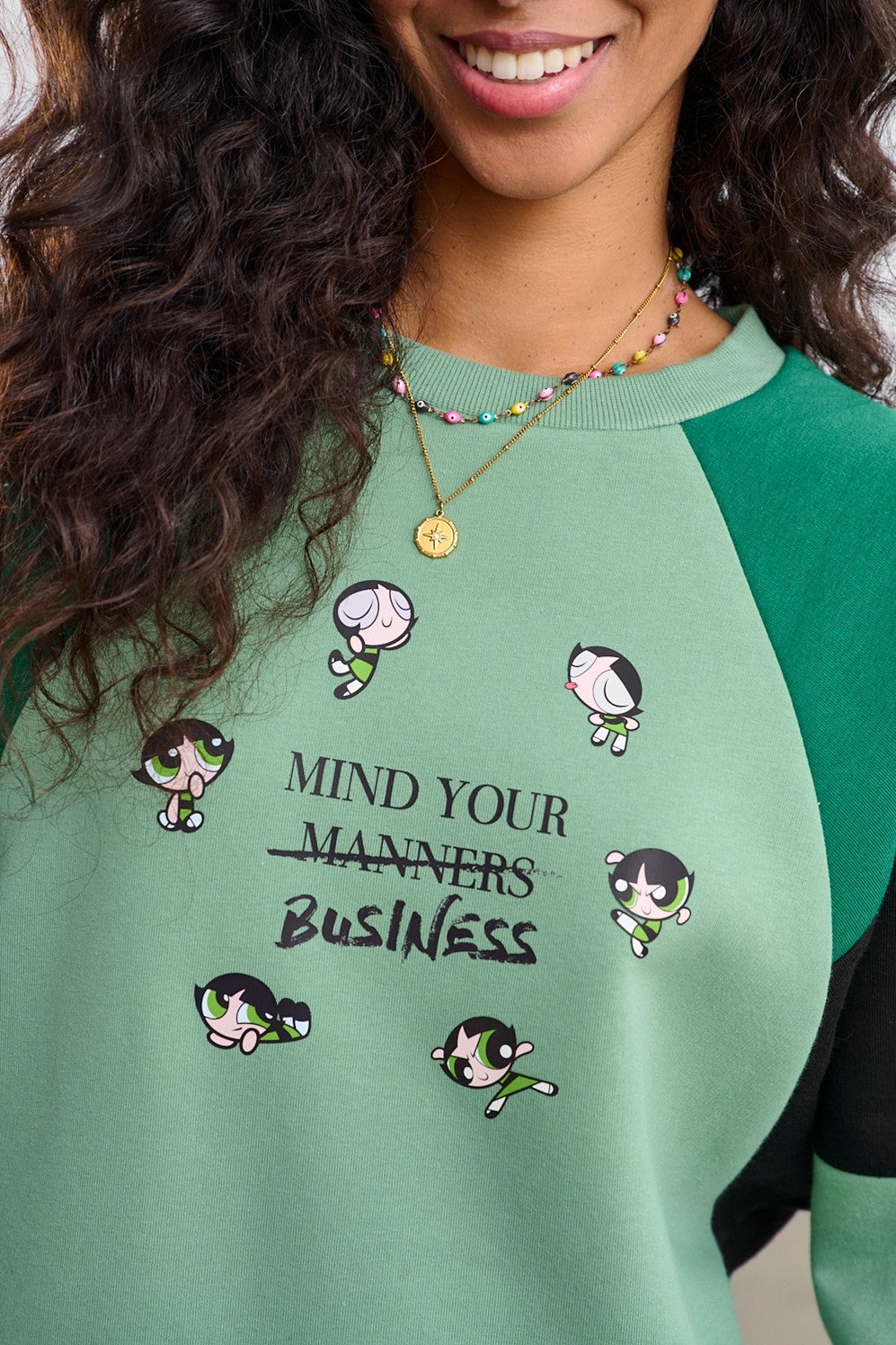 Bluza Mind Your Business to coś więcej niż ubranie – to jasny komunikat dla świata. Inspirowana postacią Brawurki (Buttercup), najtwardszej z Atomówek, łączy w sobie streetwearowy luz z nutą buntu. Napis przypomina, że bycie "grzeczną" jest przereklamowane, a teraz liczysz się Ty i Twoje zasady.