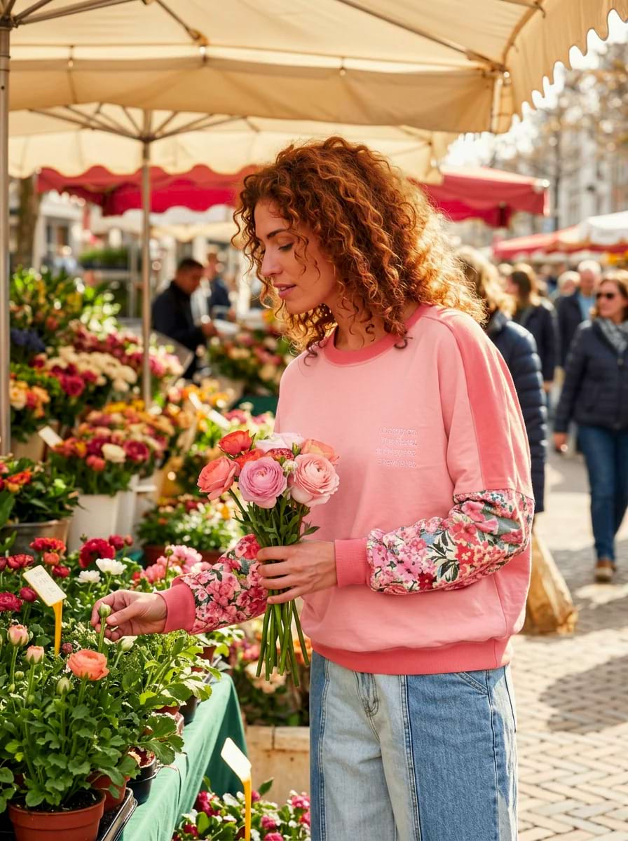 Bluza Pink Ink przyciąga wzrok kontrastowymi rękawami ozdobionymi gęstym, kwiatowym wzorem. Delikatny haft na piersi „I came for the roses, stayed for the chaos" dodaje projektowi przewrotnego uroku.