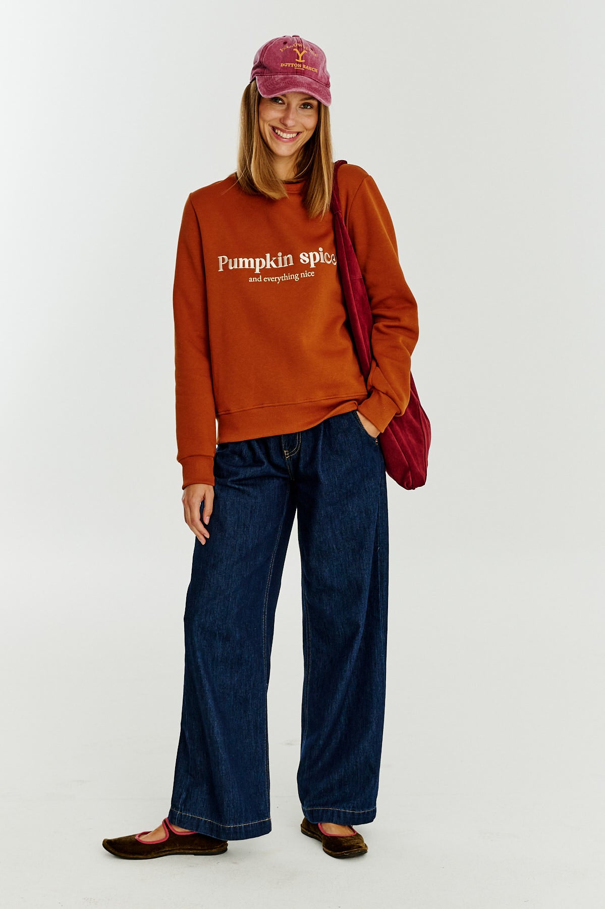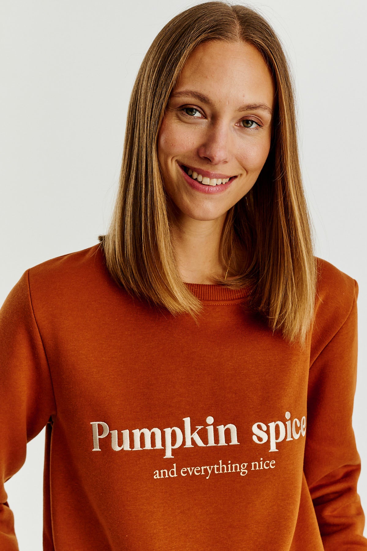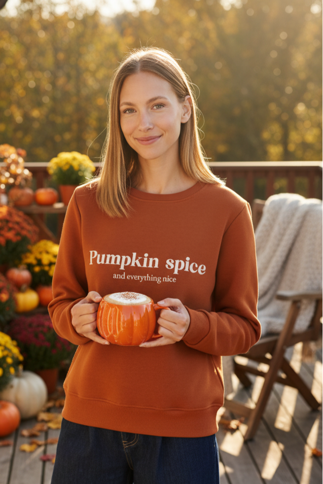 Bluza Pumpkin Spice to idealna propozycja na chłodniejsze dni, zainspirowana jesiennym klimatem. W ciepłym, brązowym kolorze, na przodzie znajduje się haftowany napis "Pumpkin Spice and everything nice", który przywodzi na myśl przytulne wieczory z kubkiem kakao.