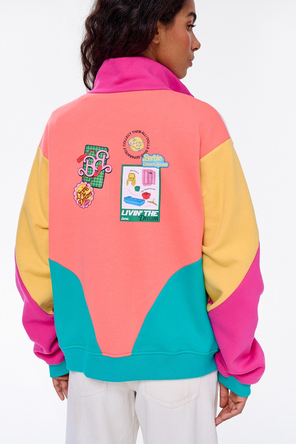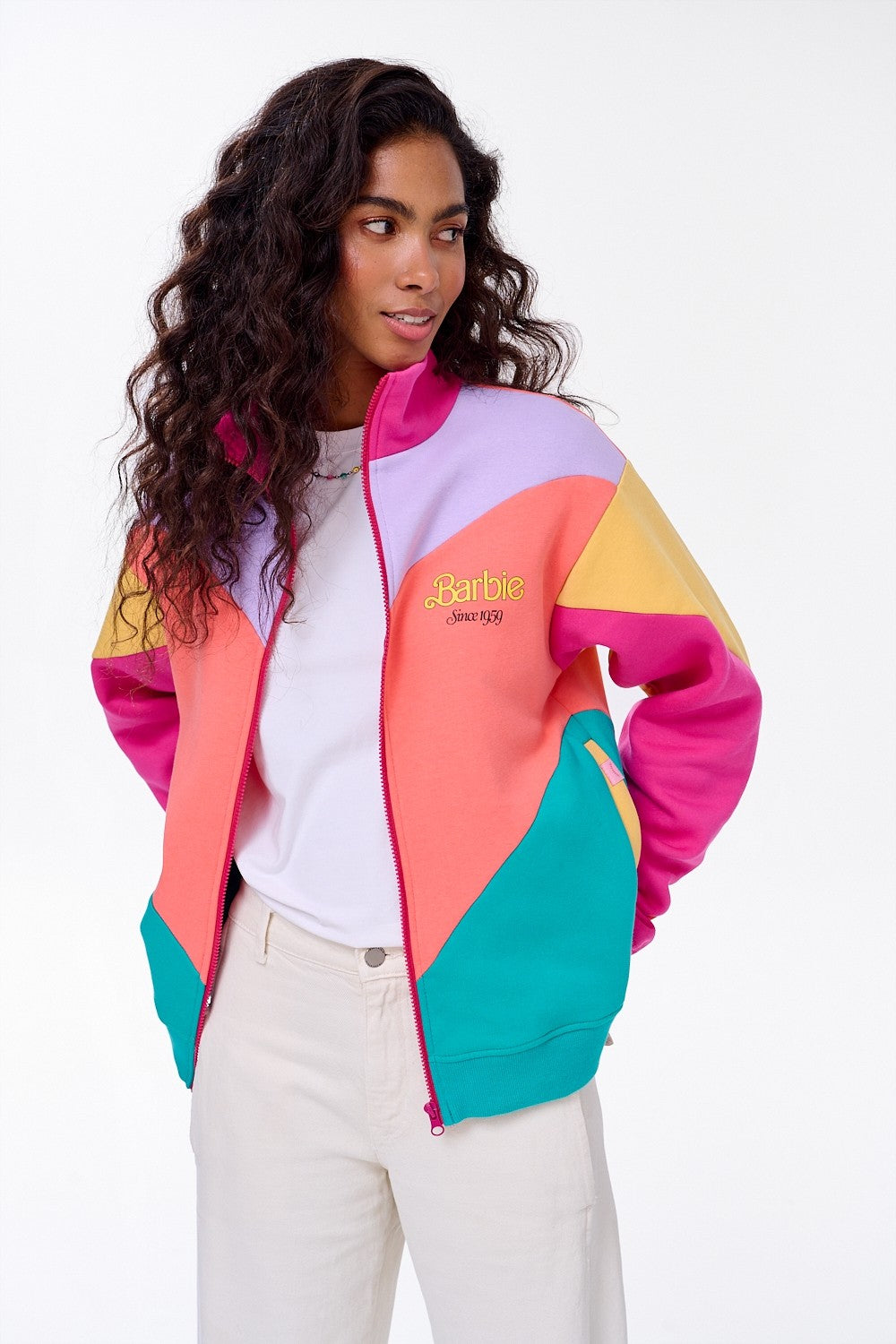 Bluza rozpinana Malibu Mode to kwintesencja stylu retro. Jej dynamiczny design oparty na geometrycznych panelach w żywych kolorach – od intensywnego różu po turkus – przywodzi na myśl słoneczne wybrzeże i styl lat 80. Wysoka stójka i wygodny zamek błyskawiczny sprawiają, że jest zarówno stylowa, jak i funkcjonalna.