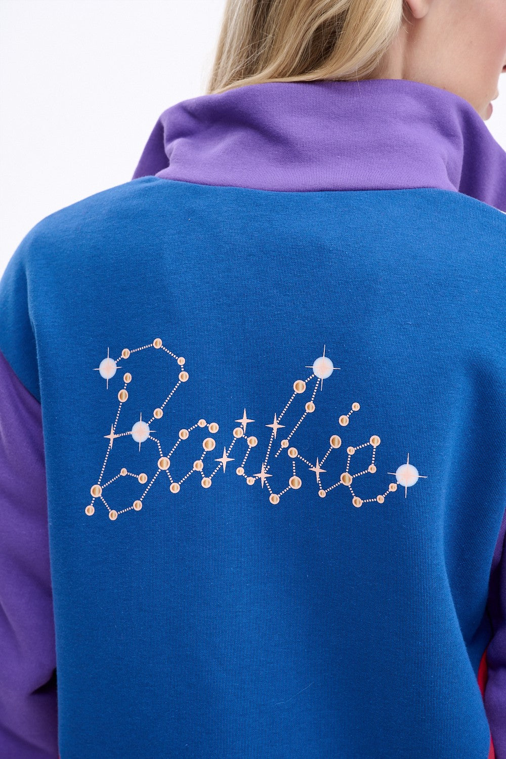 Tym, co ją wyróżnia, są detale inspirowane kosmosem. Na rękawach i piersi znajdziesz kolekcję unikatowych symboli a całe plecy zdobi imponujący nadruk przedstawiający gwiezdną konstelację, układającą się w logo Barbie™. To idealny wybór na chłodniejsze wieczory, dla tych, którzy lubią się wyróżniać.