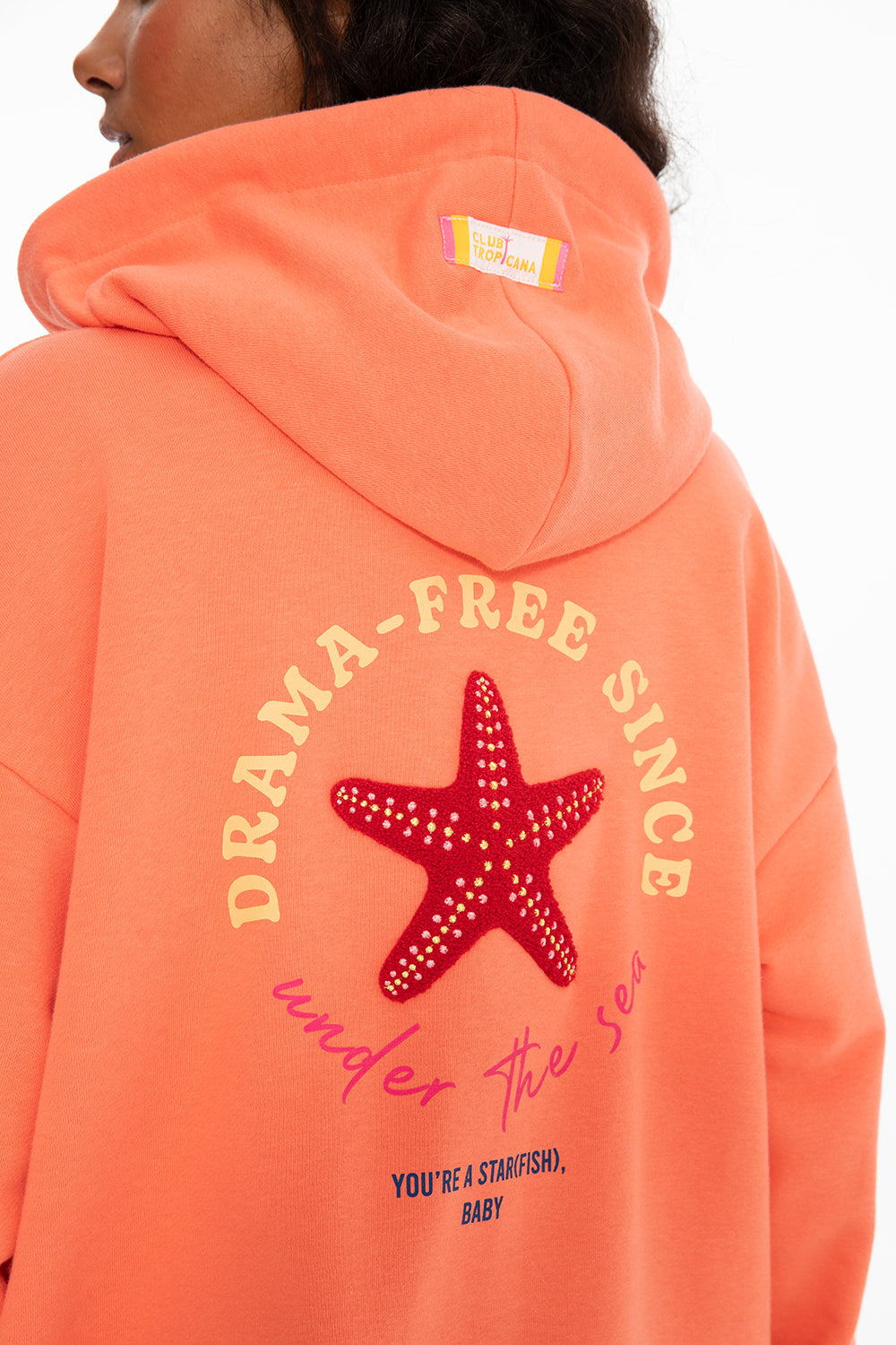 Bluza rozpinana Starfish to manifest beztroski i pozytywnej energii. Soczysty kolor, wyrazisty nadruk z rozgwiazdą i zabawnym hasłem „Drama-free since under the sea" to ukłon w stronę tych, którzy cenią modę z przymrużeniem oka. Wyjątkowe detale – od kontrastowego zamka po pastelowe sznurki i hafty – sprawiają, że ta bluza to nie tylko komfort, ale też stylowa przygoda.