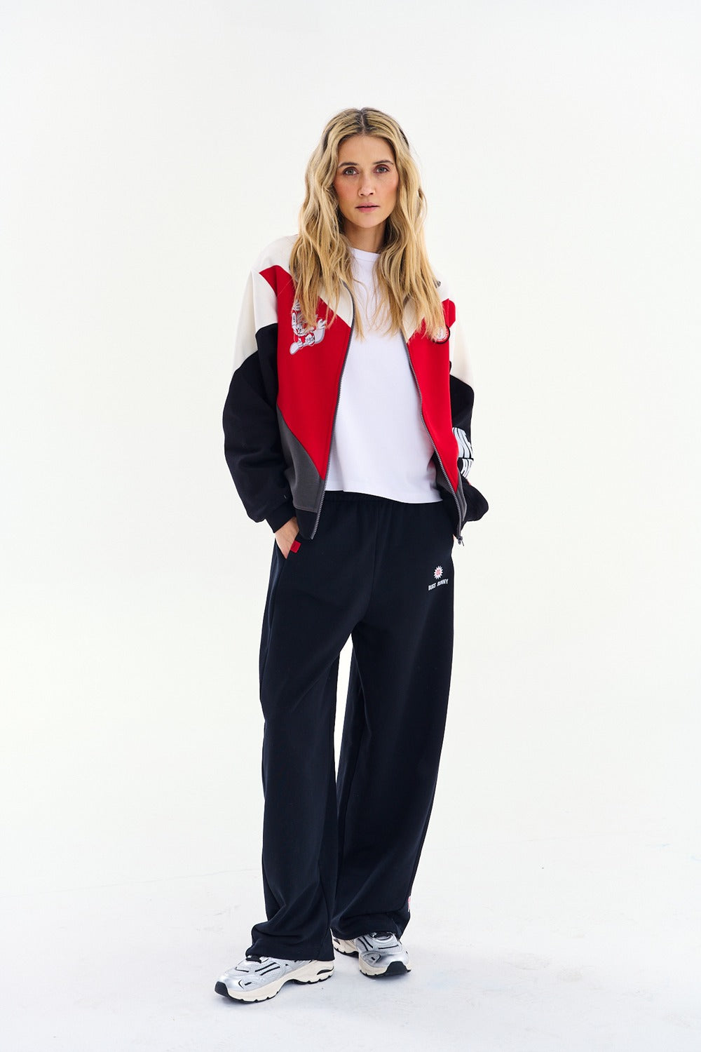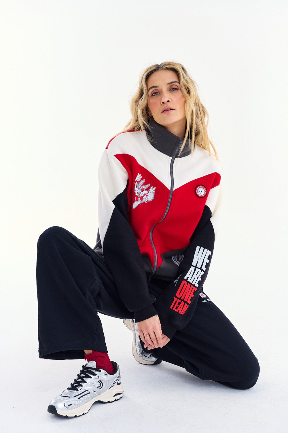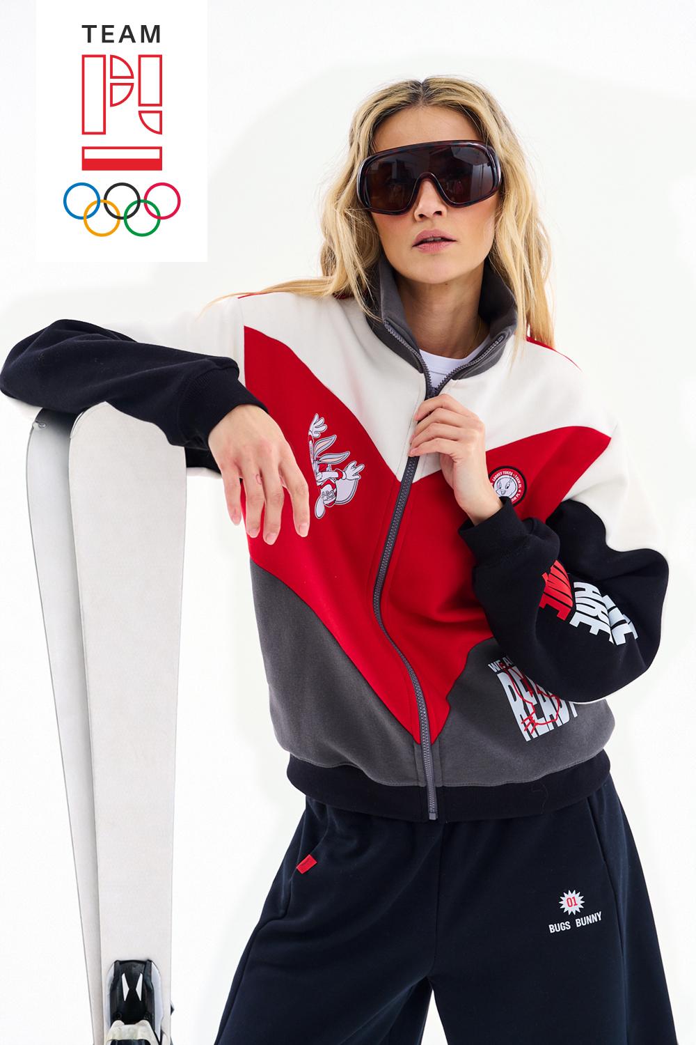 Bluza rozpinana We Are Ready ze stójką to nawiązanie do tradycyjnych strojów sportowych w nowoczesnym wydaniu. Dynamiczna kolorystyka i obecność Królika Bugsa nadają jej unikatowego stylu.