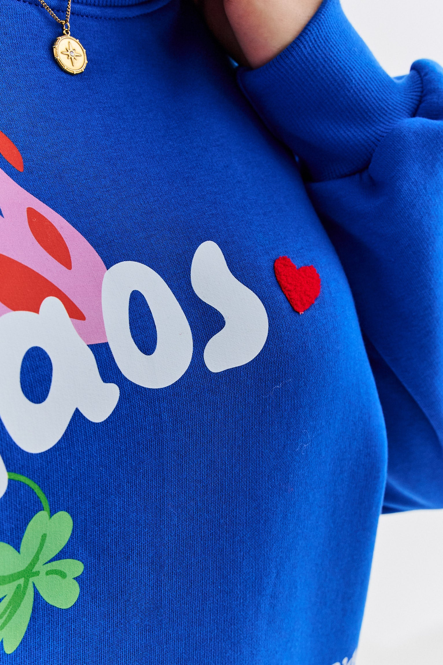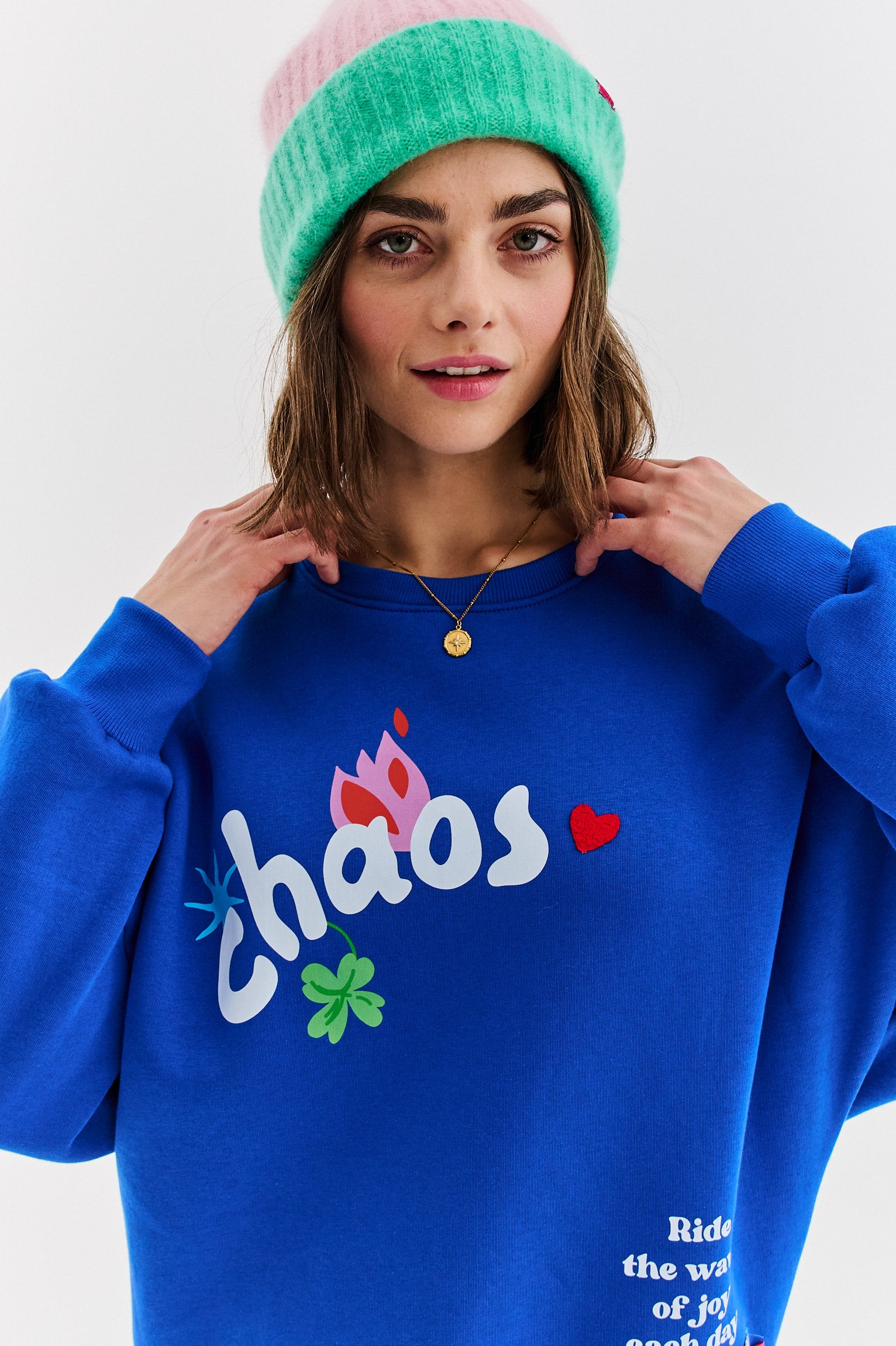 Bluza Waves of Chaos to prawdziwe dzieło sztuki do noszenia. Dynamiczny nadruk z sercem, płomieniami i motywami roślinnymi przyciąga wzrok i inspiruje do wyrażania siebie. To coś więcej niż ubranie – to sposób na pokazanie swojej kreatywnej duszy.
