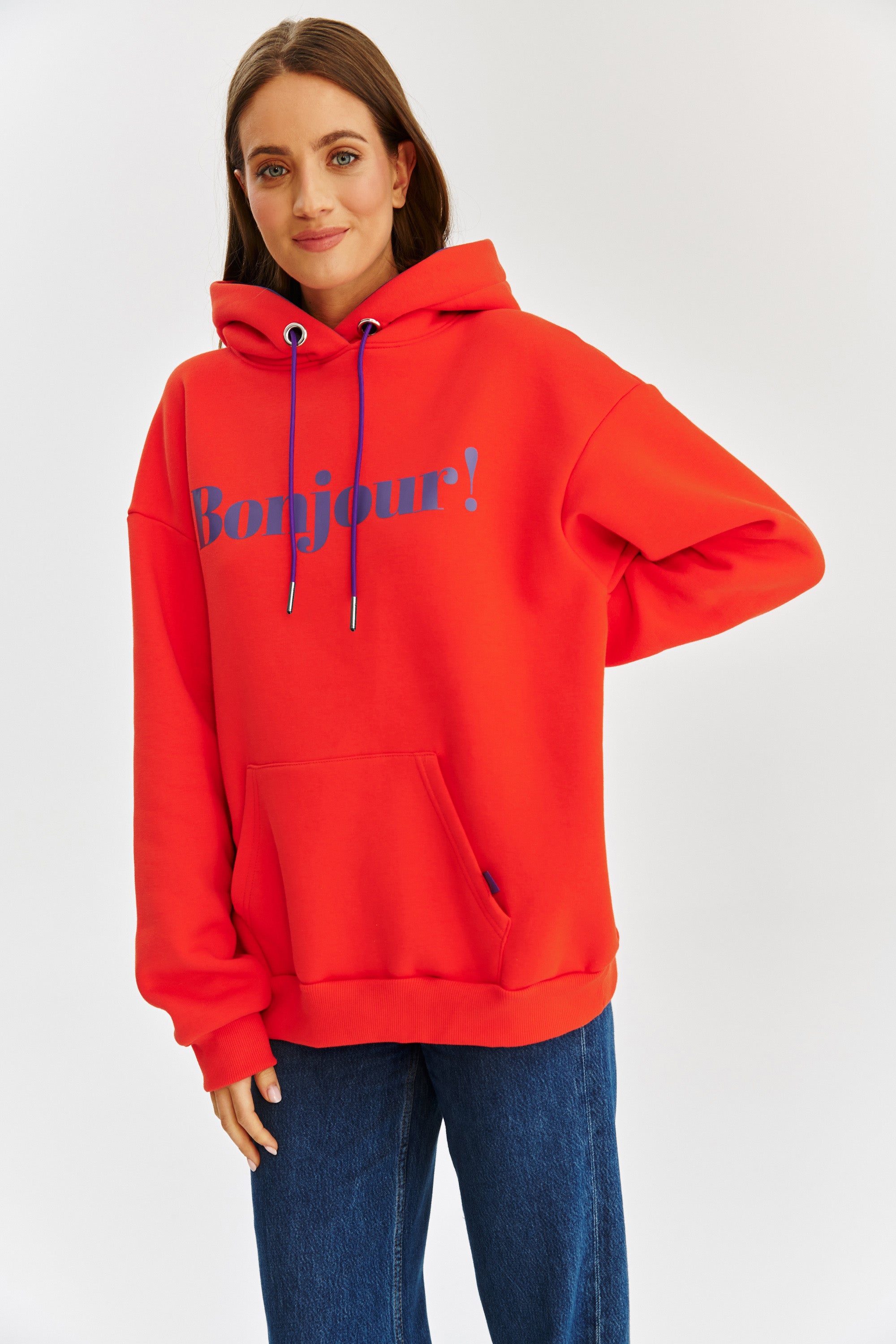 Bluza z kapturem Bonjour Adieu to prawdziwy hit w świecie mody! Z humorem, zawiera napis "bonjour" z przodu i "adieu" z tyłu, co sprawia, że jest nie tylko stylowa, ale także wywoła uśmiech na twarzy każdego, kto ją zobaczy. Dzięki ściągaczom, kapturowi i kieszeniom jest wygodna i praktyczna na co dzień.