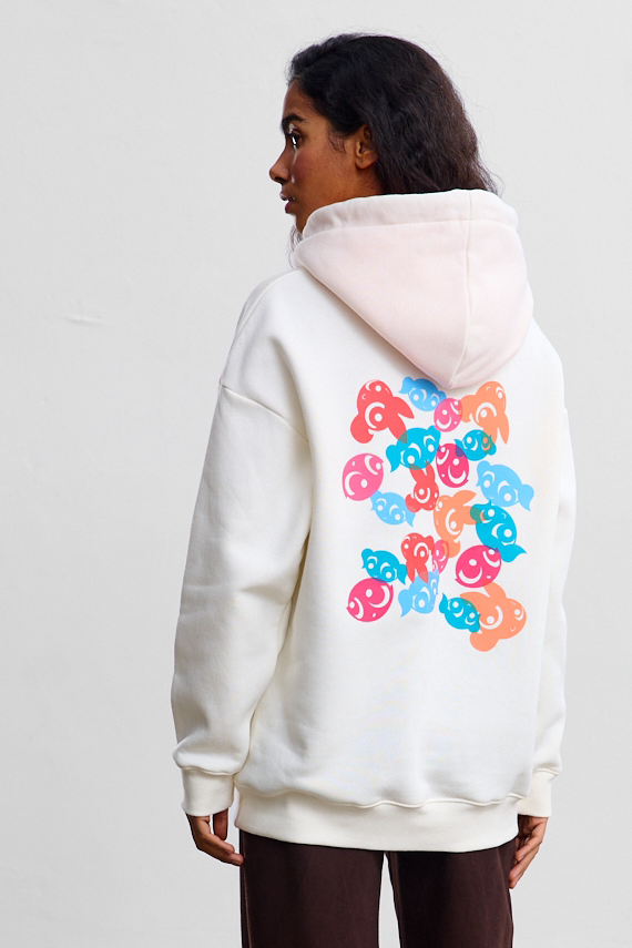 Bluza z kapturem Bubble Boom to powrót do dzieciństwa w modnym wydaniu. Kremowa baza stanowi tło dla kolorowej grafiki z wizerunkiem Atomówek w stylu pop-art.