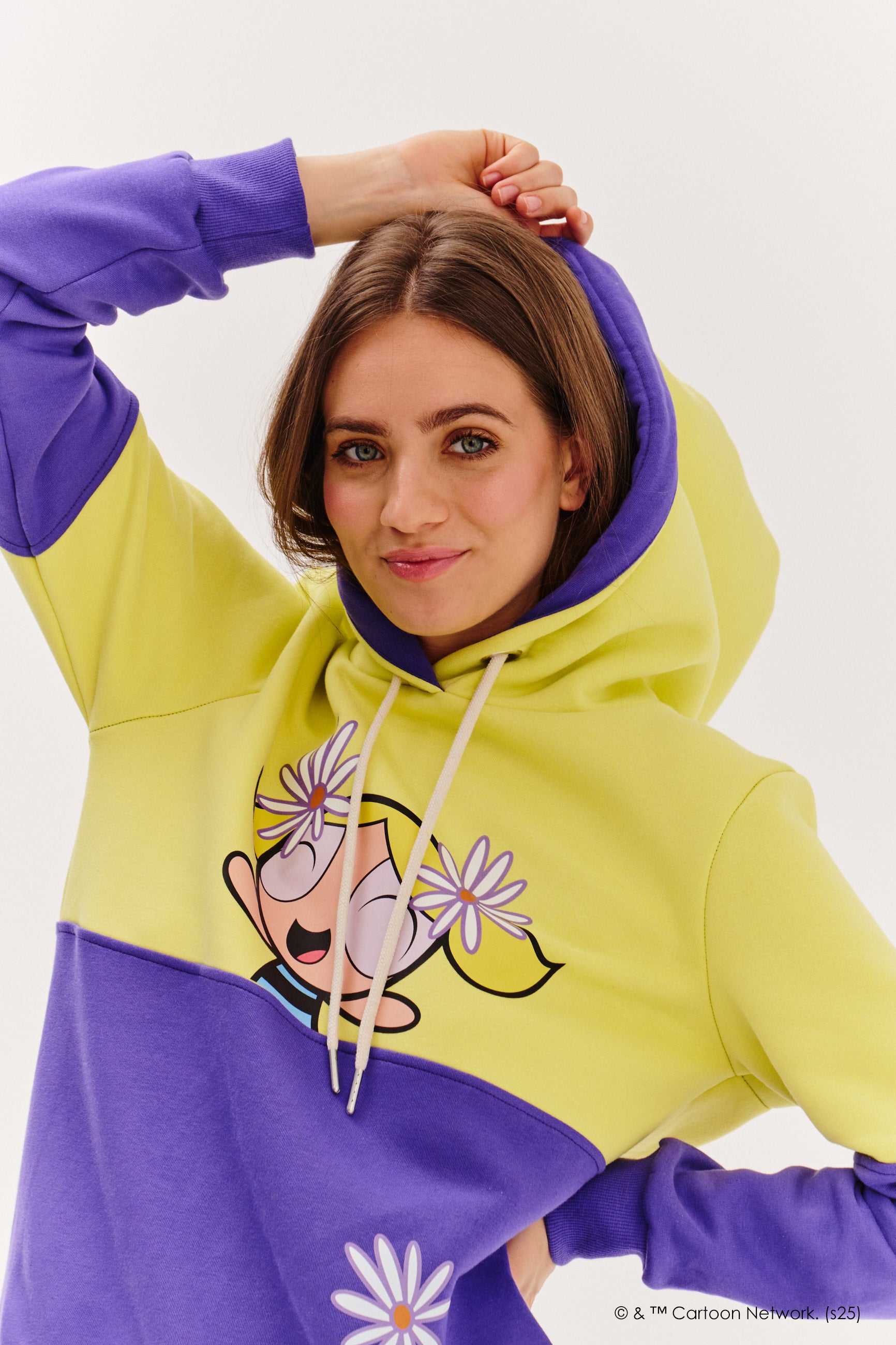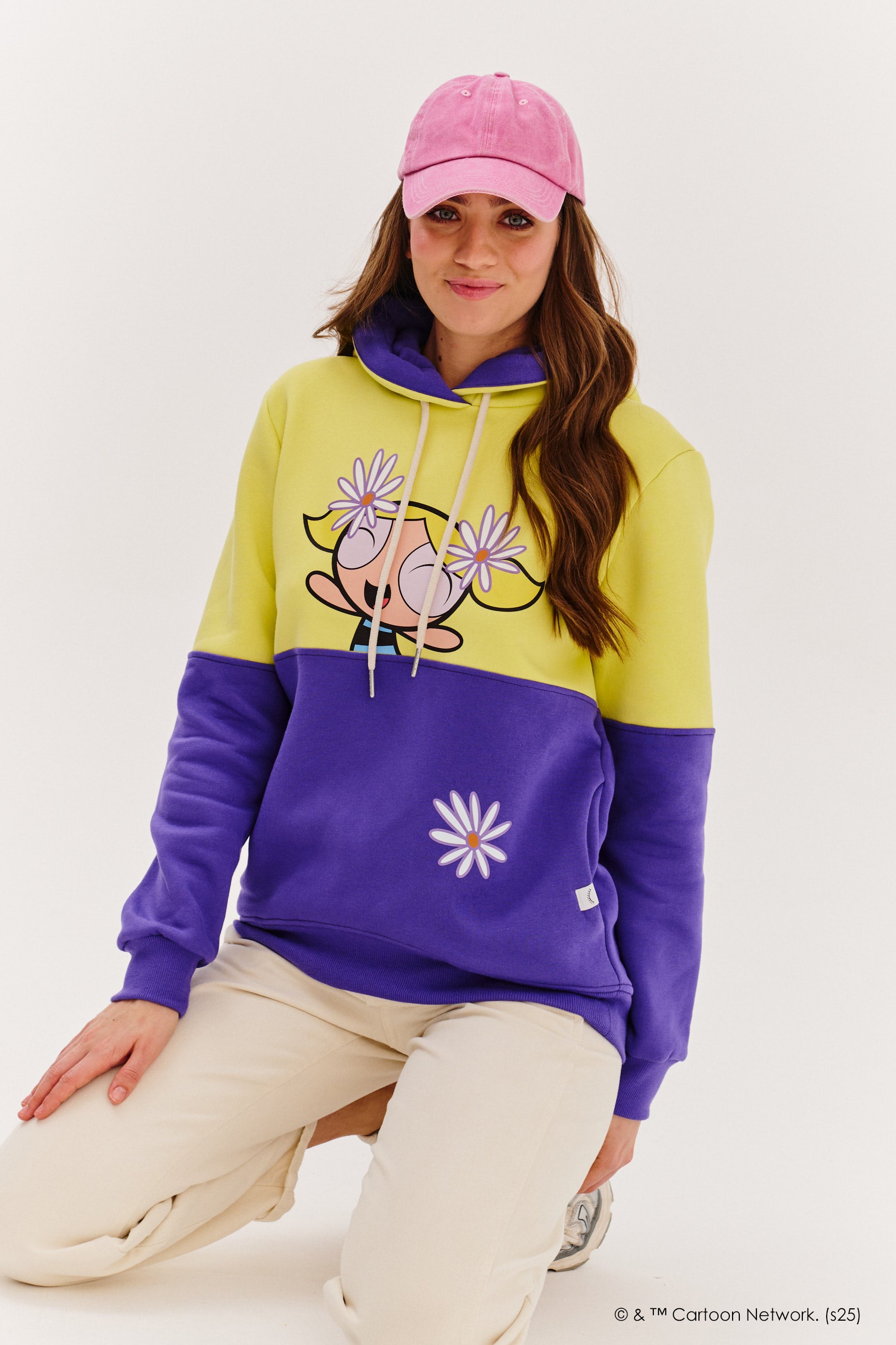 Bluza z kapturem Bubbles Sorbet to eksplozja radości i koloru, inspirowana najbardziej urokliwą z Atomówek – Bubbles! Żółto-fioletowe połączenie barw przenosi do kreskówkowego świata beztroski, a uroczy nadruk z Bubbles i stokrotkami rozczula od pierwszego spojrzenia.