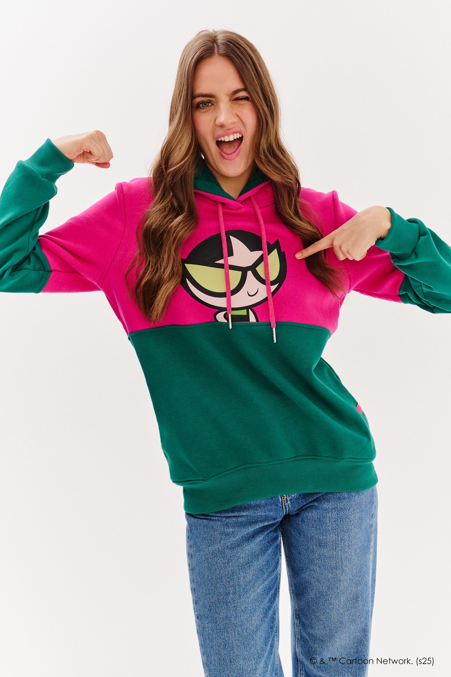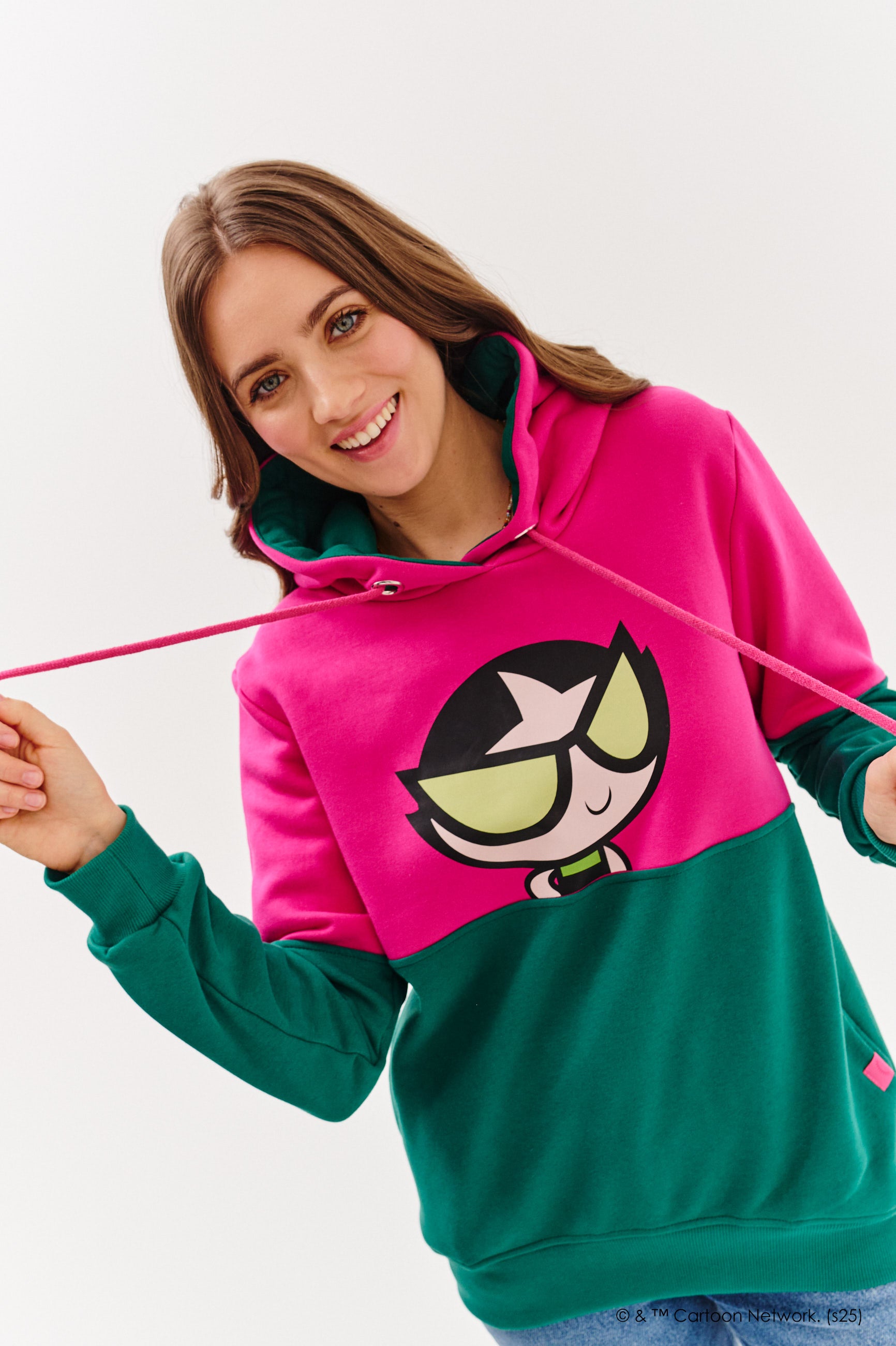 Bluza z kapturem Buttercup Candy to kwintesencja dziewczyńskiej siły z odrobiną buntowniczego charakteru! Inspirowana nieustraszoną Buttercup, łączy intensywny róż z głęboką zielenią, tworząc kontrastowy, pełen energii duet, który od razu przyciąga wzrok.