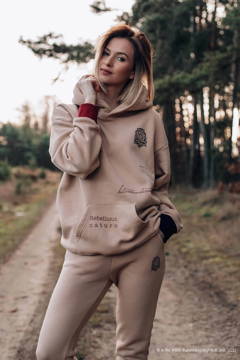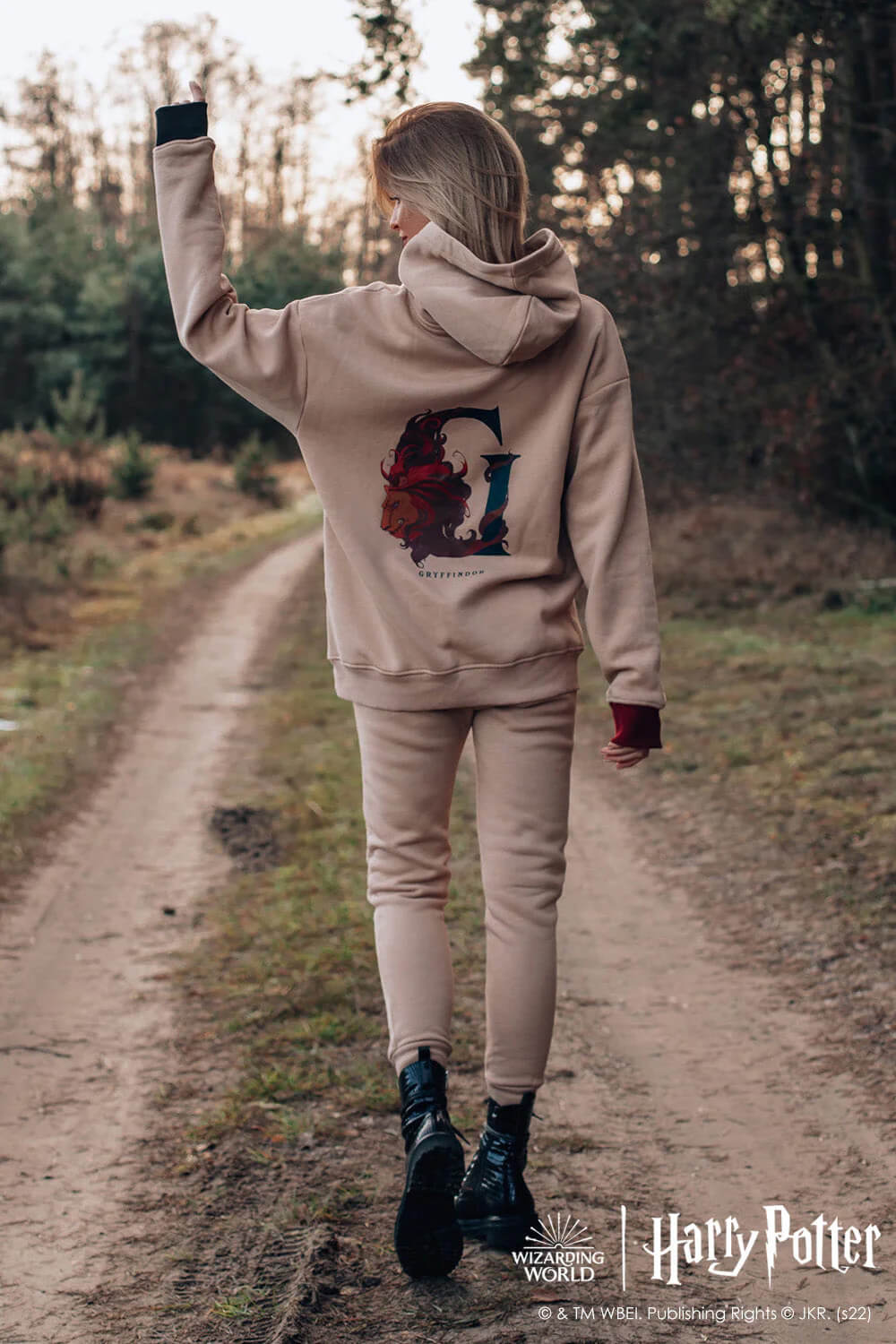 Odkryj magię w codziennych stylizacjach! Niech Twoim towarzyszem będzie bluza z kapturem Gryffindor. Beżowy model sprawdzi się każdego dnia i w każdych okolicznościach - niezależnie, czy odpoczywasz w domu, wychodzisz na miasto czy rozpoczynasz weekendową podróż. Wygodna, ciepła i bardzo kobieca!