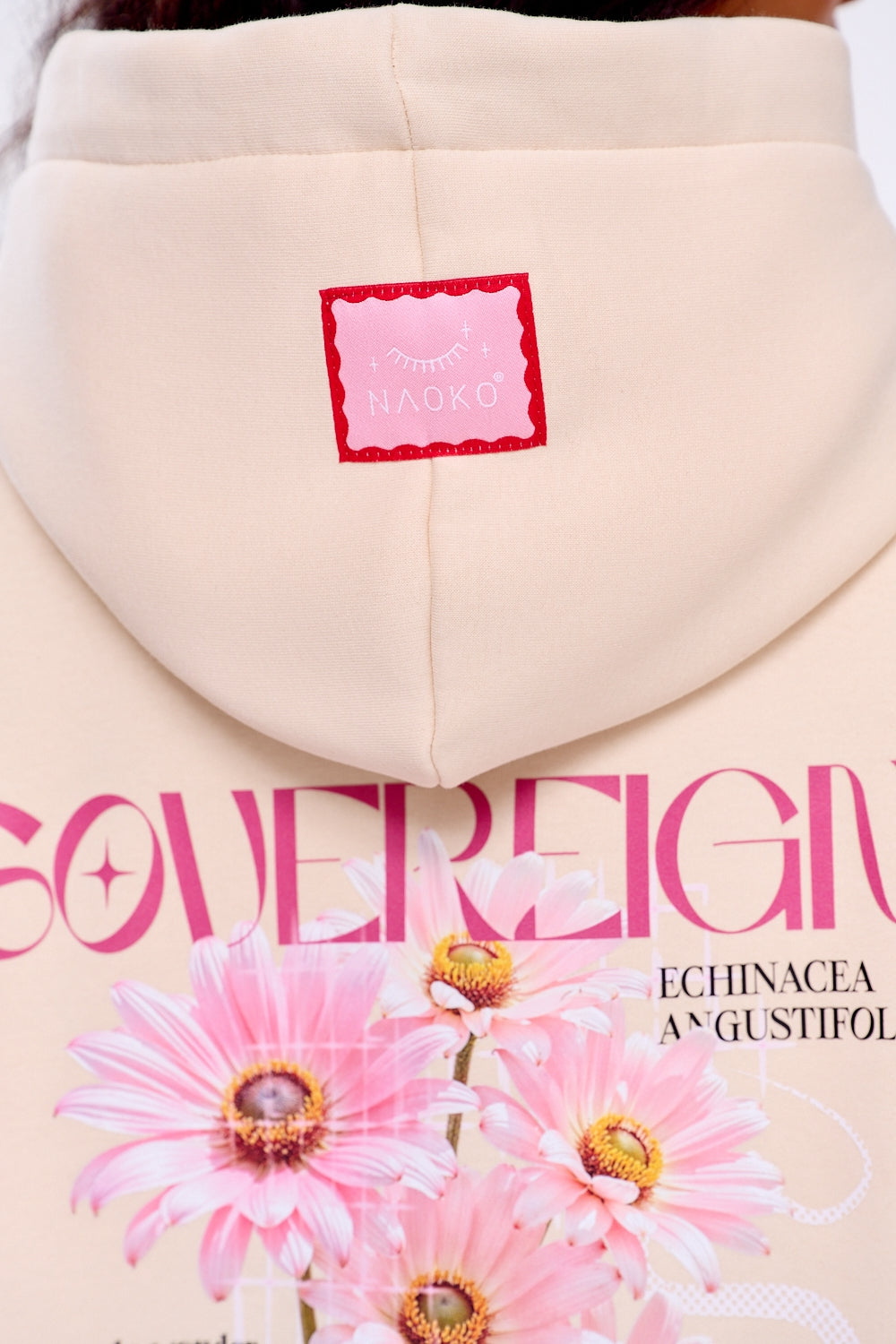 Delikatne napisy dodają całości subtelnego uroku, a kontrastowe detale, takie jak różowa podszewka kaptura czy sznurki, nadają bluzie niepowtarzalnego charakteru. To bluza, która nie tylko wyróżnia się designem, ale też niesie ze sobą przesłanie – przypomina, by dostrzegać piękno w drobiazgach i wierzyć w dobrą energię, która nas otacza.