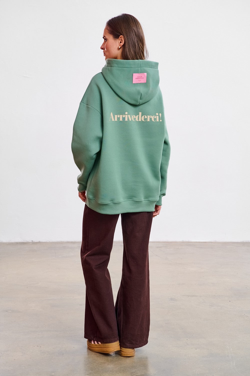 Bluza z kapturem Only Ciao to manifest podróżniczej duszy. Zgaszona zieleń idealnie komponuje się z rdzawym wnętrzem kaptura, tworząc paletę barw inspirowaną naturą. Napis "Ciao!" z przodu wita nowy dzień, a "Arrivederci!" na plecach żegna nudę. Dłuższy fason z kieszenią kangurką zapewnia maksymalną funkcjonalność.
