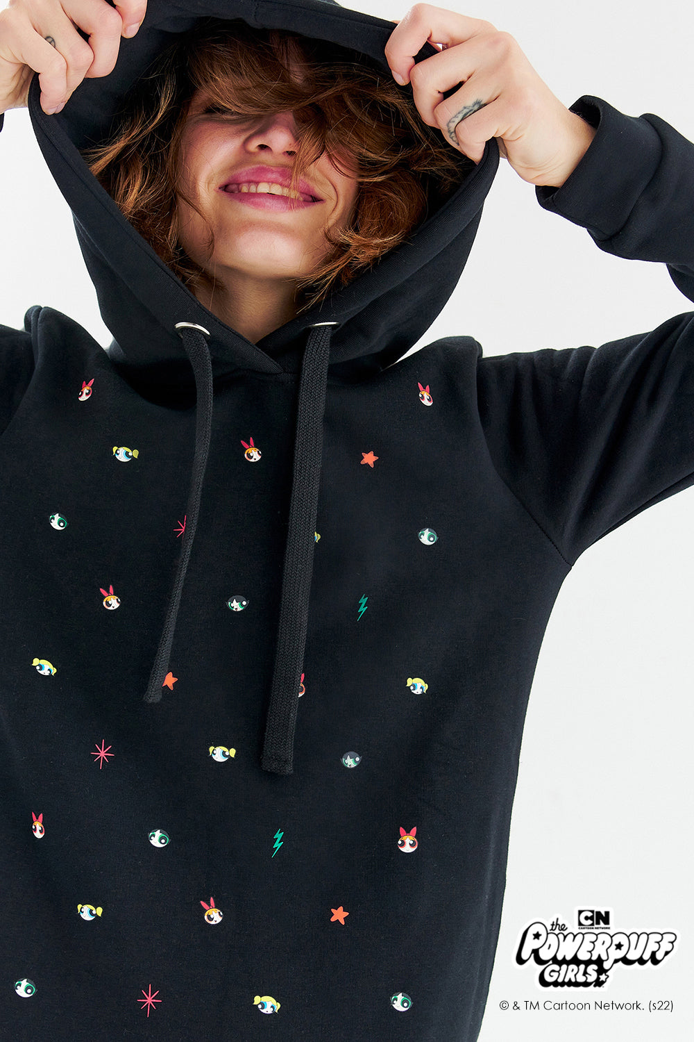 Wybuchowa energia i girl power w wersji casual! Bluza z kapturem Powerpuff Girls z haftowanymi detalami z Atomówkami i kolorowymi symbolami to nie tylko wygoda, ale też mocny stylowy statement.