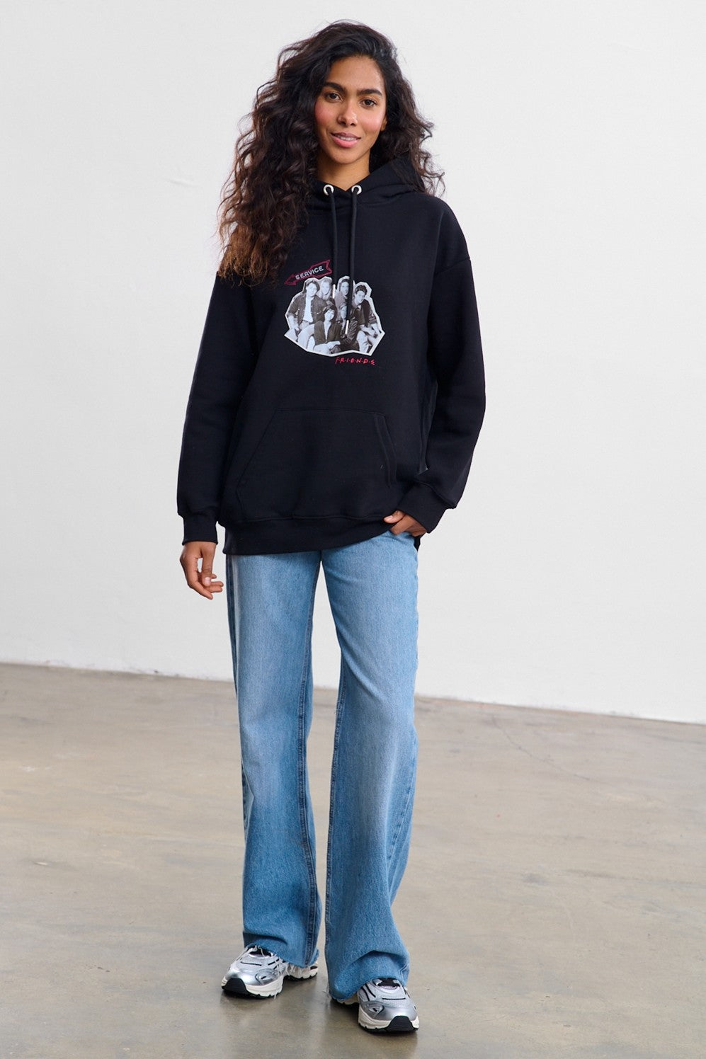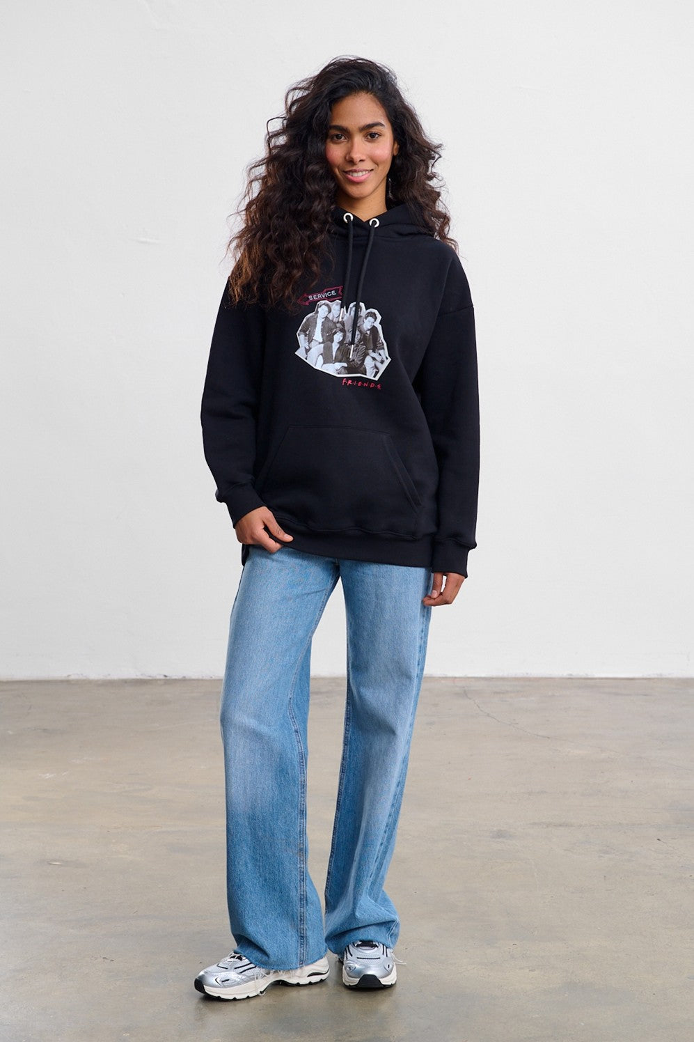 Bluza z kapturem Together to absolutny must-have dla każdego fana "Friends". Głęboka czerń bluzy stanowi idealne tło dla nostalgicznych grafik. Z przodu znajduje się czarno-białe zdjęcie szóstki przyjaciół, ozdobione czerwonymi akcentami.