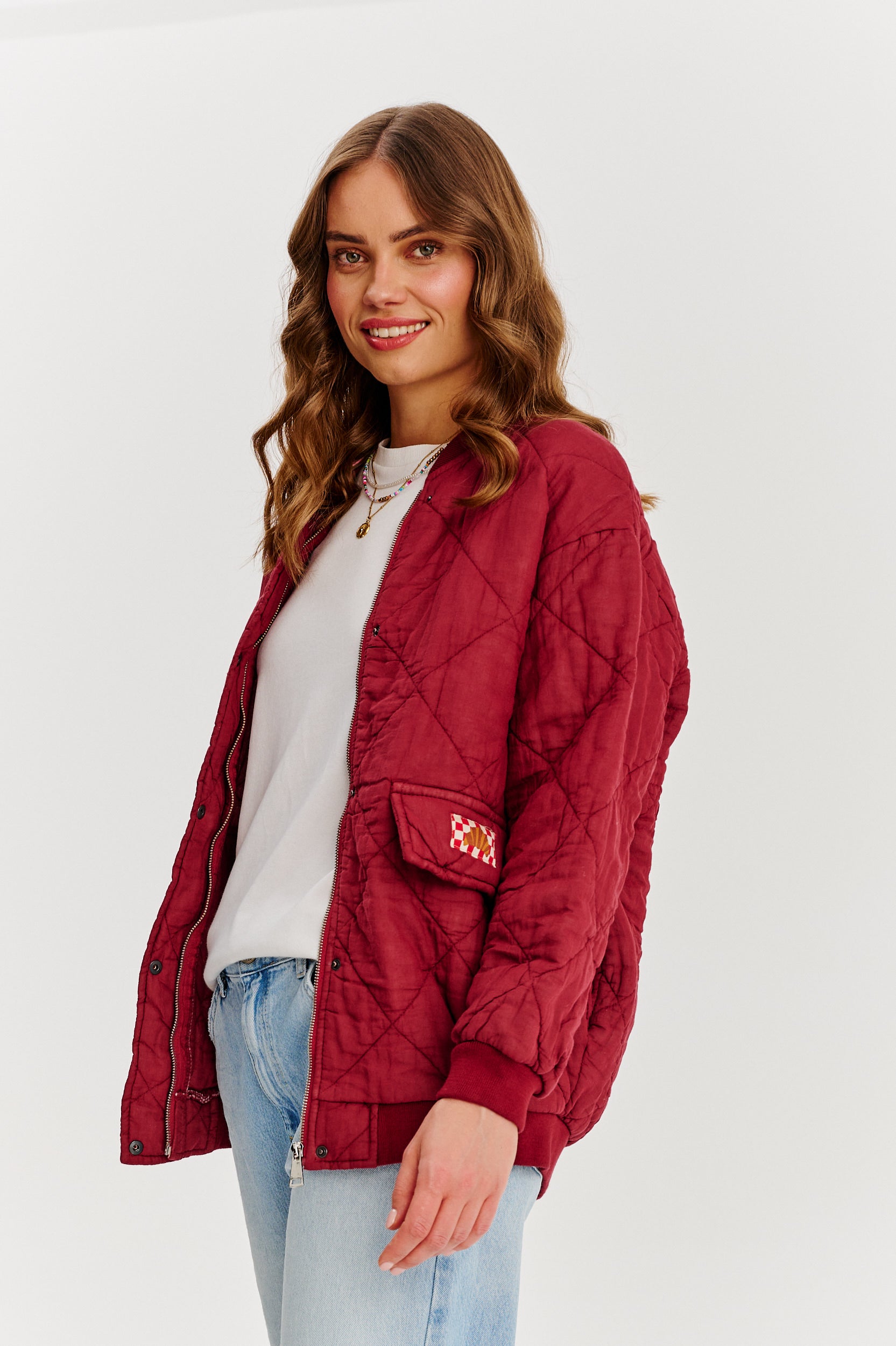 Otul się wyjątkowym ciepłem i stylem dzięki bomberce pikowanej Smoky Blush. Jej oversize'owy krój zapewnia komfort i swobodę noszenia, a pikowana struktura dodaje charakteru i nowoczesnego wyrazu. W odcieniu miedzianej czerwieni bomberka staje się stylowym akcentem w każdej garderobie.