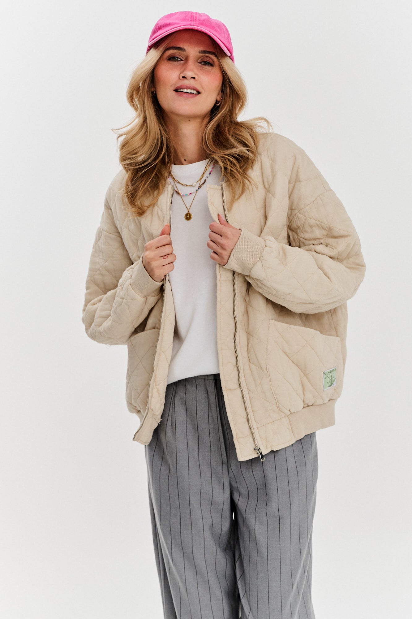 Bomberka pikowana Shades of Dusk łączy w sobie klasykę i styl! To ponadczasowy fason w klasycznym, beżowym odcieniu, który dodaje stylu i kobiecego uroku każdej stylizacji. Wykonana z miękkiej tkaniny, zapewnia komfort noszenia, a zapinanie na guziki dodaje jej eleganckiego charakteru.