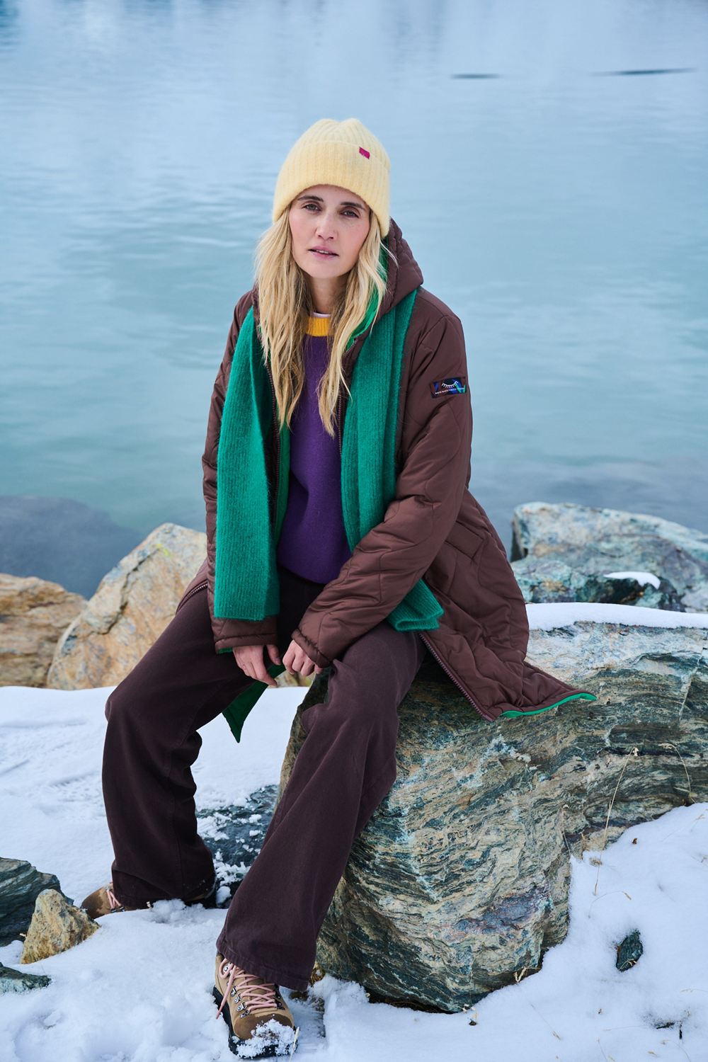 Czapka beanie Cozy Sunshine to zimowy must-have, który rozjaśni nawet najbardziej pochmurny dzień. Jej maślany odcień żółci wprowadza do stylizacji nutę optymizmu i ciepła, sprawiając, że każdy look nabiera wyjątkowej, pozytywnej energii.
