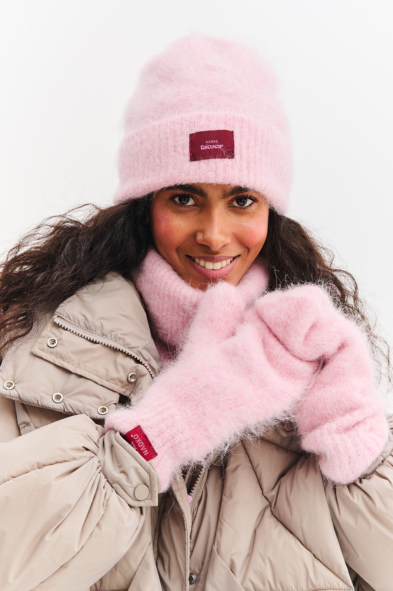 Czapka Huggy Blush to kwintesencja komfortu i kobiecego stylu. Została wykonana z puszystej dzianiny z dodatkiem wełny z alpaki, która słynie ze swoich wyjątkowych właściwości termoizolacyjnych i niezwykłej miękkości. Dzięki temu czapka jest lekka, a jednocześnie bardzo ciepła.