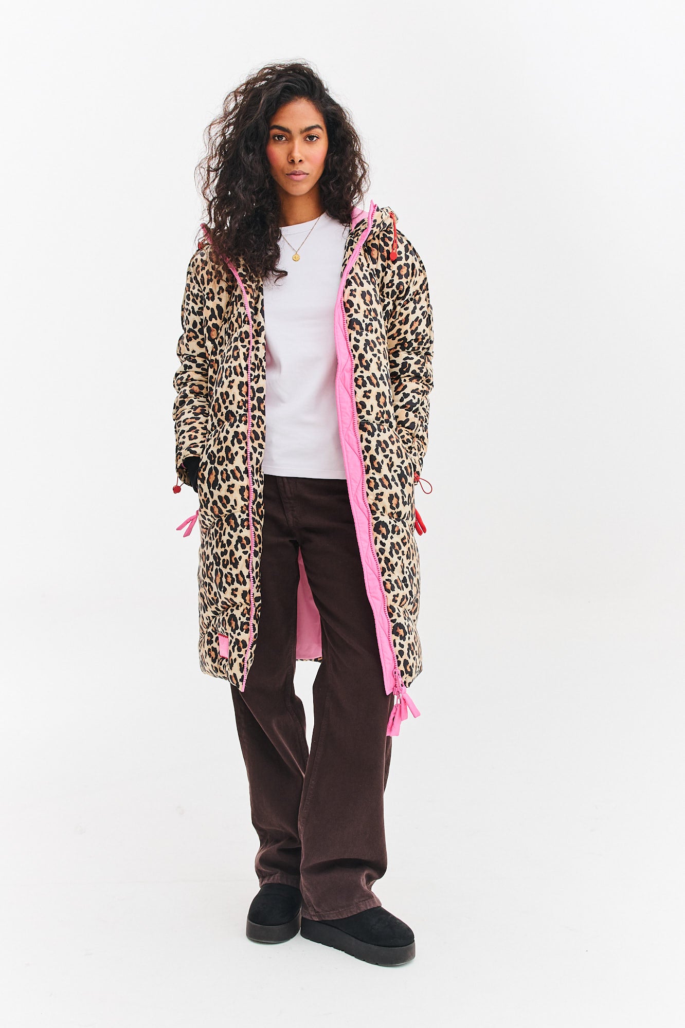 Długa kurtka zimowa Montreal Roar to odważna propozycja dla fanek zwierzęcych wzorów. Klasyczny lampart został tu przełamany nowoczesnym fasonem z szerokimi rękawami i kapturem. Różowa podszewka kaptura i suwak dodają całości odrobiny koloru i dziewczęcego uroku.