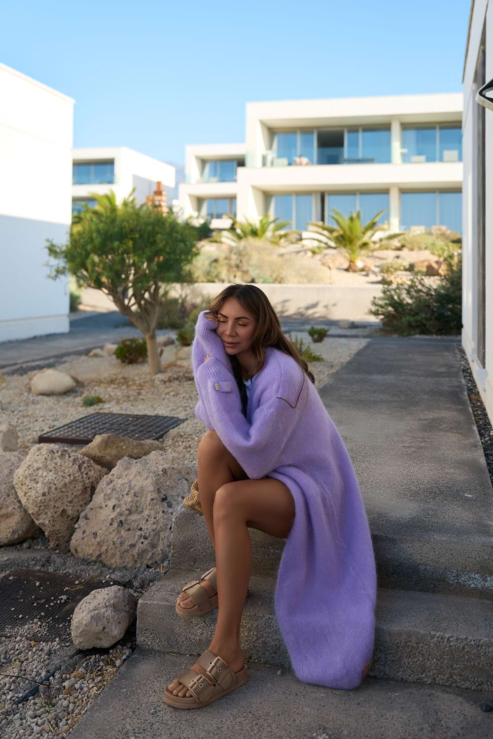 Lekkość, puszystość i wyjątkowy kolor inspirowany delikatnym odcieniem lawendy - długi kardigan moherowy Lavender Blush stanie się Twoim ulubionym towarzyszem chłodniejszych dni. Wykonany z moherowej przędzy, otula ciepłem, jednocześnie pozostając niezwykle lekki i przewiewny. Jego oversize’owy krój zapewnia swobodę ruchów i nieskończone możliwości stylizacji – od casualowych looków z jeansami po bardziej eleganckie zestawienia z sukienką.