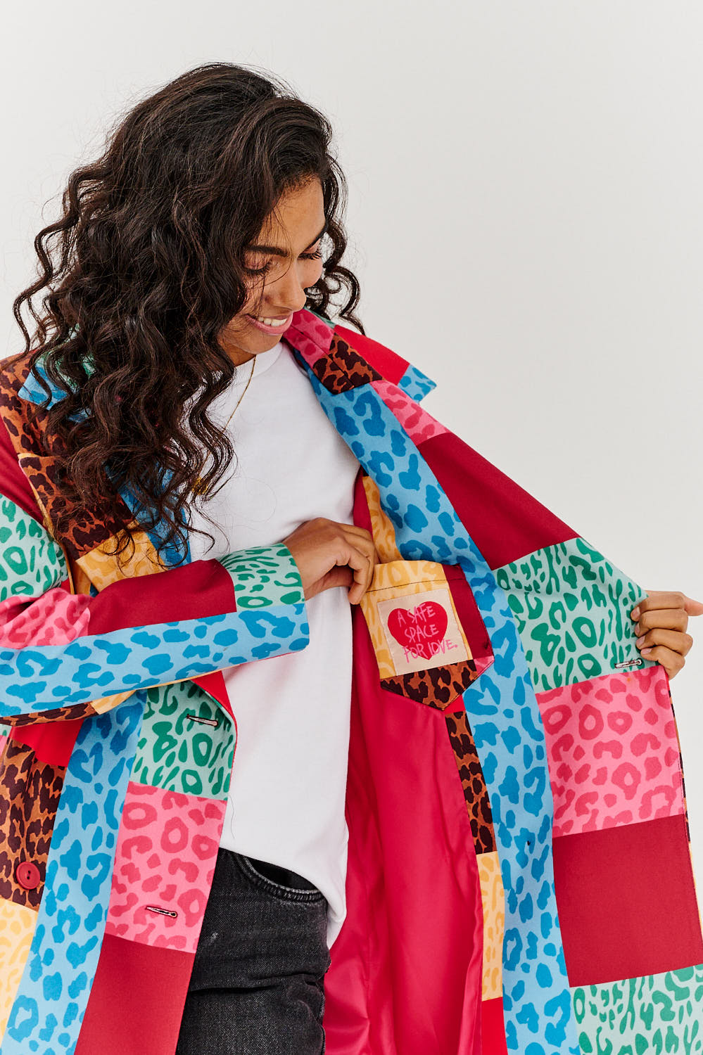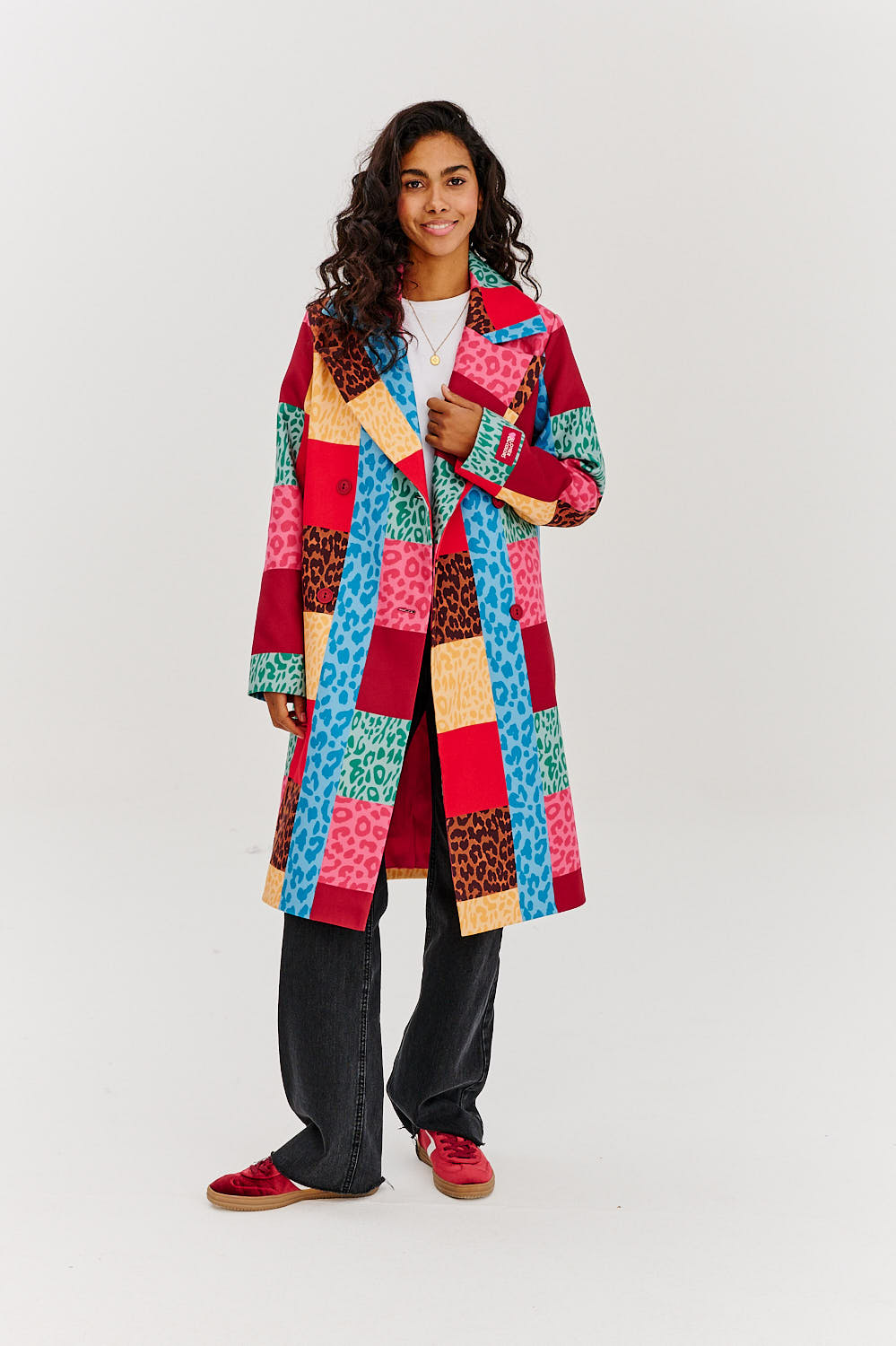 Dwurzędowy płaszcz patchworkowy Urban Roar to połączenie miejskiej nonszalancji i energii natury. Jego patchworkowy design zachwyca odważnym zestawieniem kolorów i wzorów – od panterki po kontrastowe bloki w odcieniach czerwieni, zieleni, błękitu i złota. Dwurzędowy krój podkreśla klasyczną elegancję, a jednocześnie dodaje charakteru każdej stylizacji.