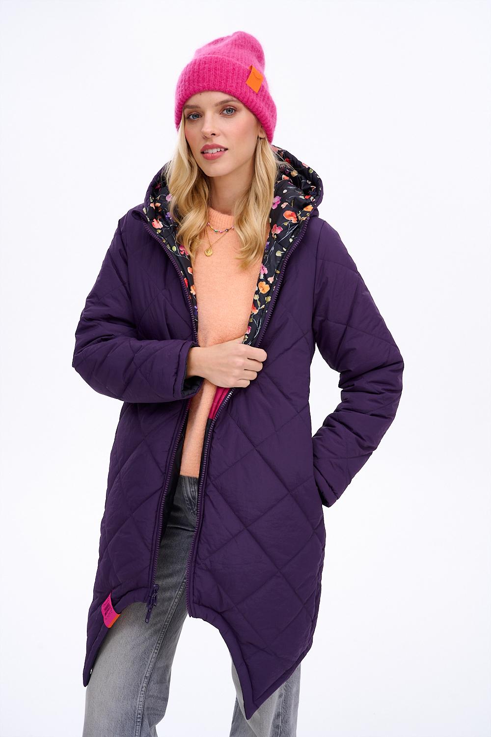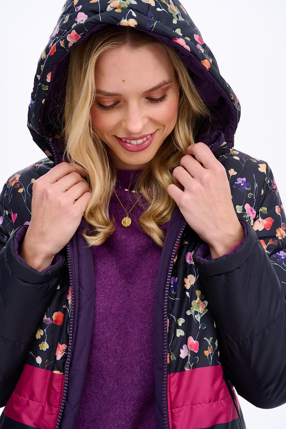 Dwustronna kurtka zimowa Iceberg Blooming Secret to historia dwóch stylów zamknięta w jednym, ciepłym płaszczu. Postaw na wyrazistą stronę z czarującym, kwiatowym printem i kolorowymi akcentami, lub wybierz gładką, elegancką wersję w odcieniu głębokiego fioletu. Idealna dla niezdecydowanych i miłośniczek zmian.