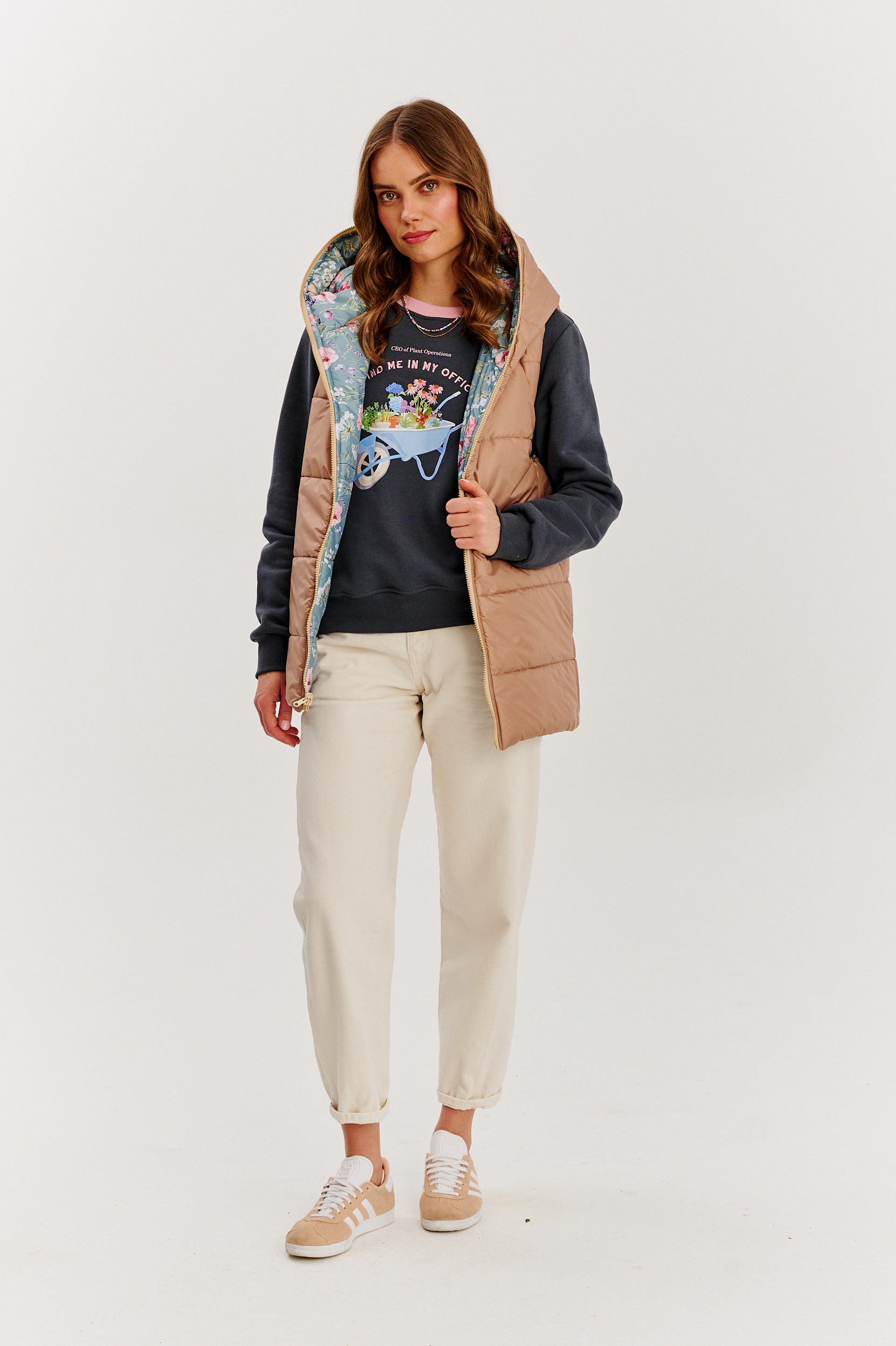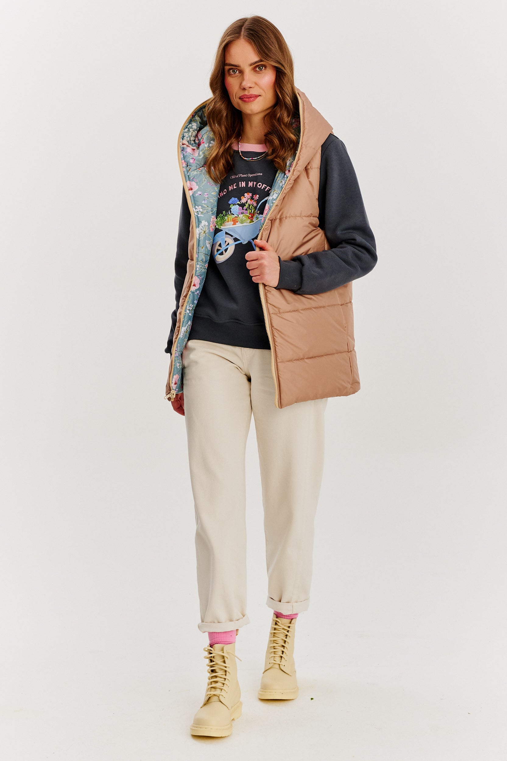 Z jednej strony mięta i kwiaty, z drugiej – karmelowa klasyka. Kamizelka dwustronna Fresh Focus to propozycja dla tych, którzy kochają wygodę, ale nie chcą rezygnować z efektu „wow” w stylizacji. To idealna towarzyszka wiosennych spacerów, weekendowych wyjazdów czy codziennych miejskich eskapad.