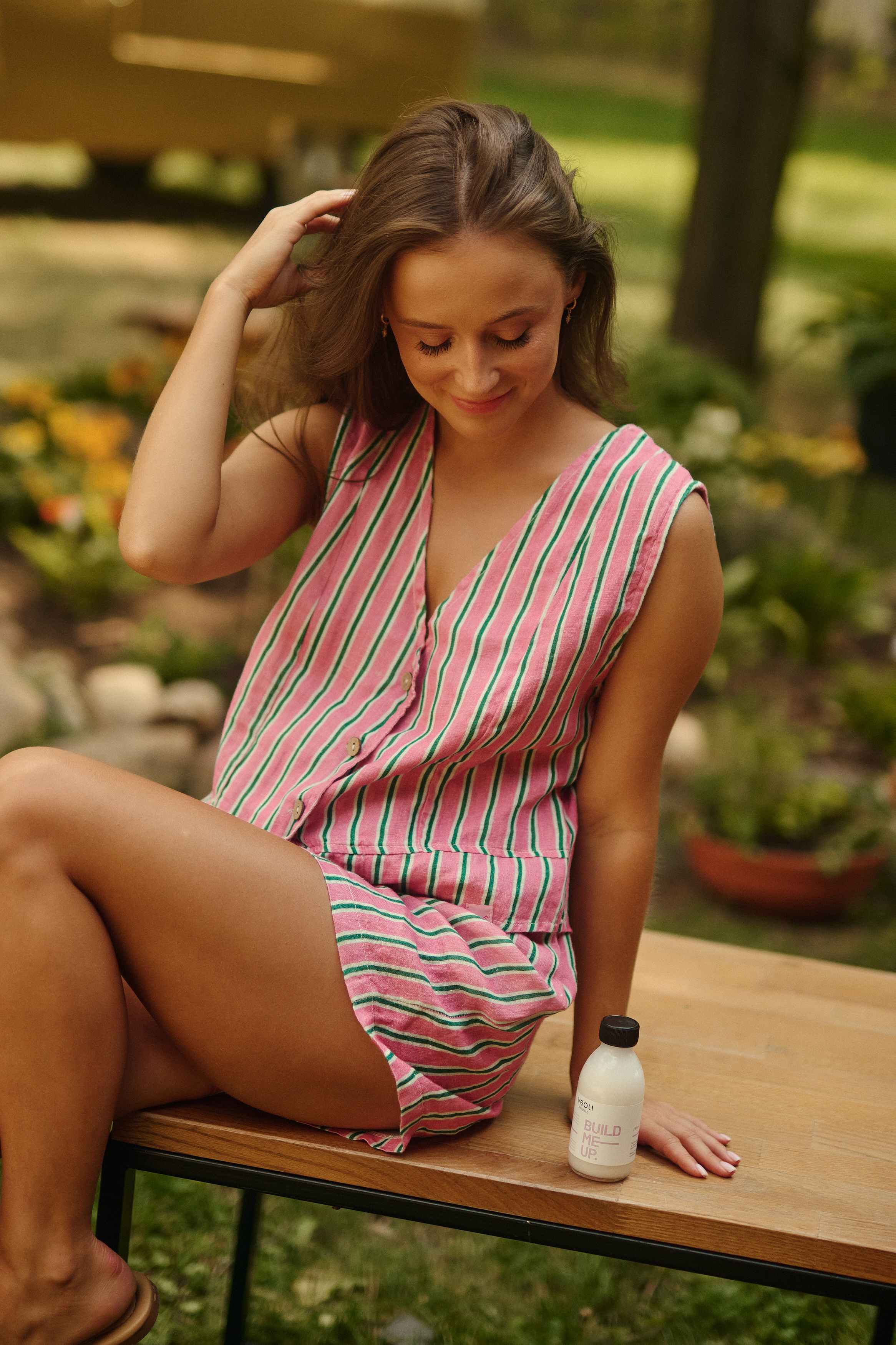 Kamizelka lniana Candy Floss to elegancki i stylowy element garderoby, który doskonale sprawdzi się zarówno na co dzień, jak i na specjalne okazje. Wykonana w 100% z przewiewnego lnu, zapewnia komfort noszenia nawet w ciepłe dni.