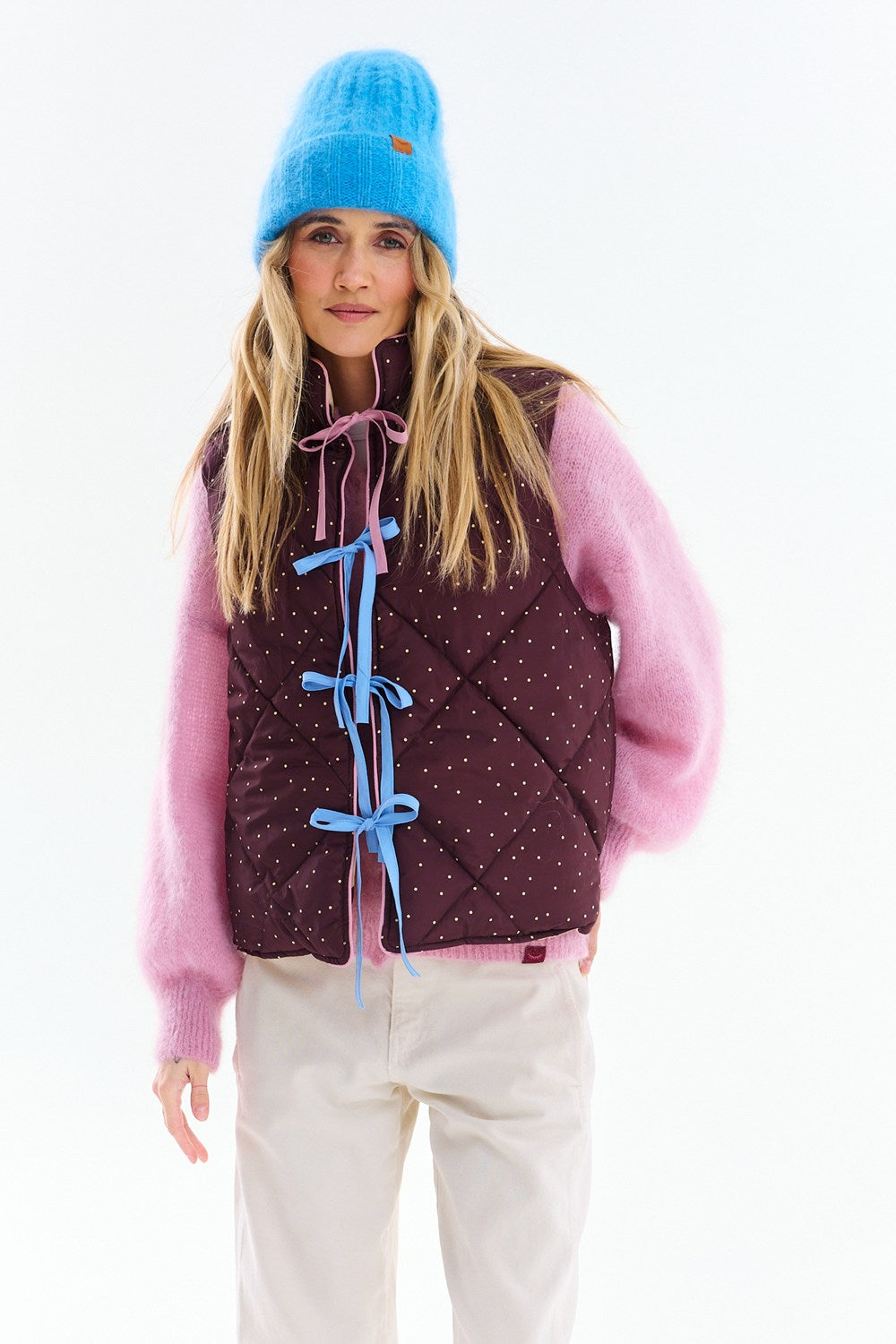 Kamizelka pikowana Dotlicious to prawdziwa gratka dla fanek wzorów. Z jednej strony duże grochy na kremowym tle, z drugiej – delikatne kropki na brązie.