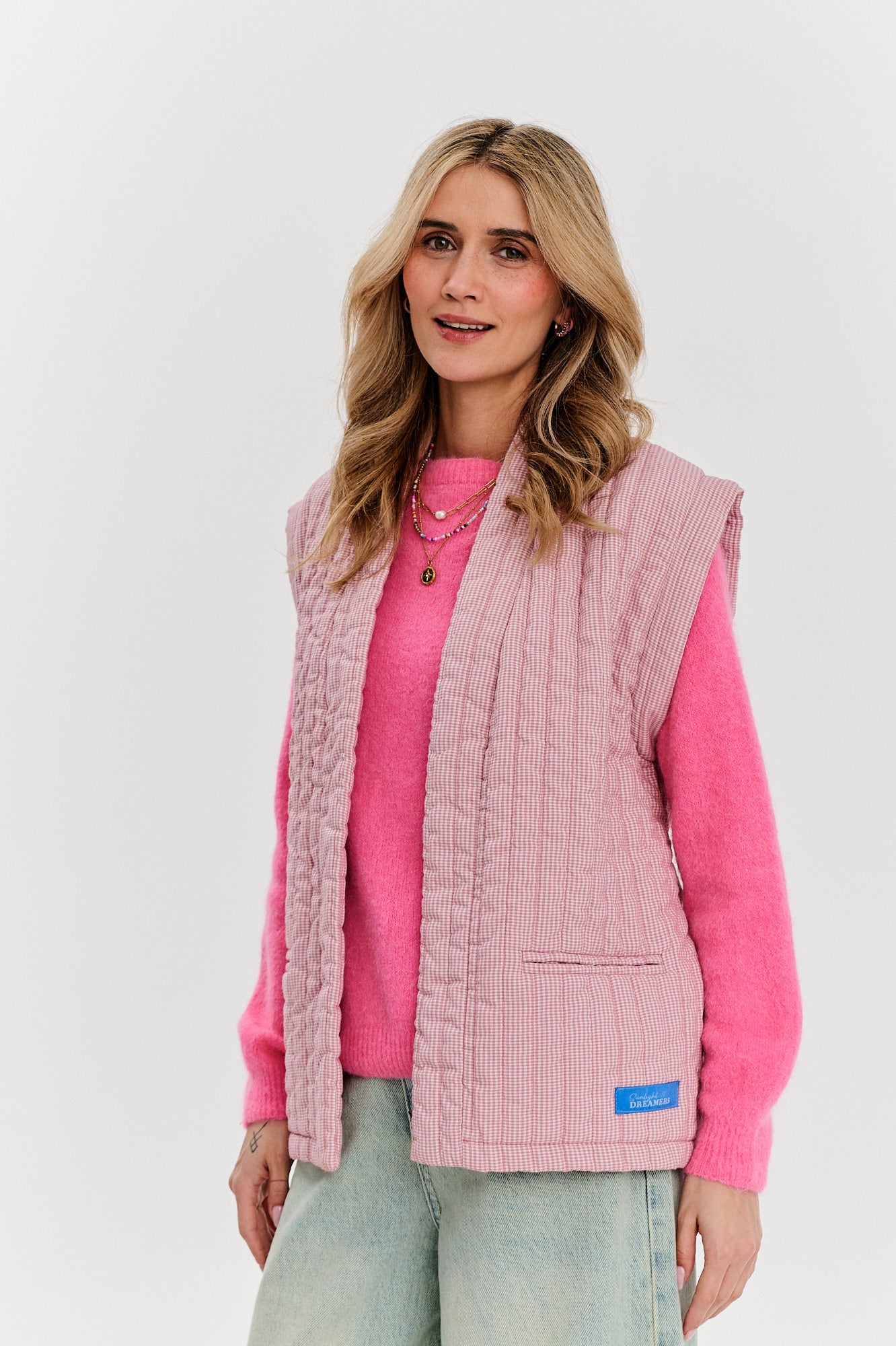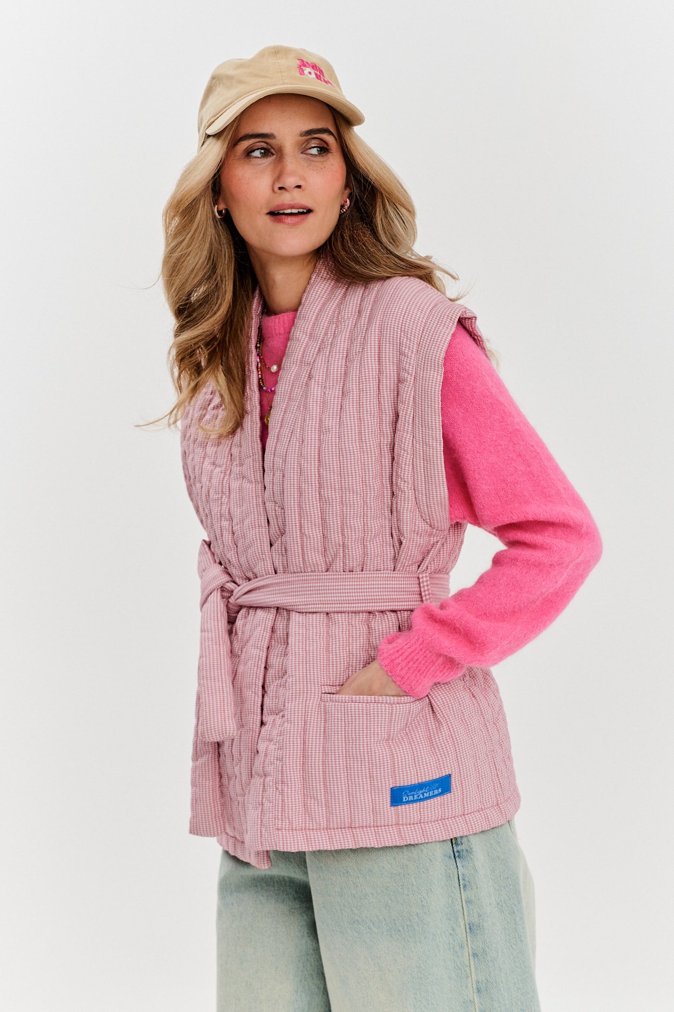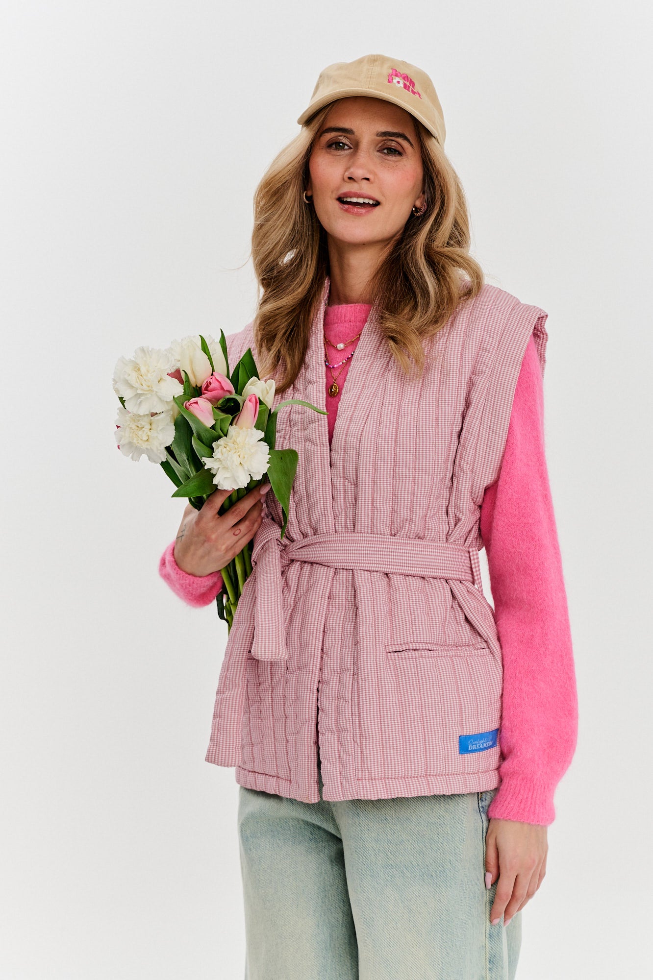 Kamizelka pikowana Soft Hug to kwintesencja komfortu i ponadczasowego stylu. Wykonana z miękkiej, pikowanej tkaniny w subtelną kratkę, otula ciepłem i dodaje wyjątkowego charakteru każdej stylizacji. Jej klasyczny fason z przewiązywanym paskiem podkreśla sylwetkę, a praktyczne kieszenie sprawiają, że jest nie tylko stylowa, ale i funkcjonalna.