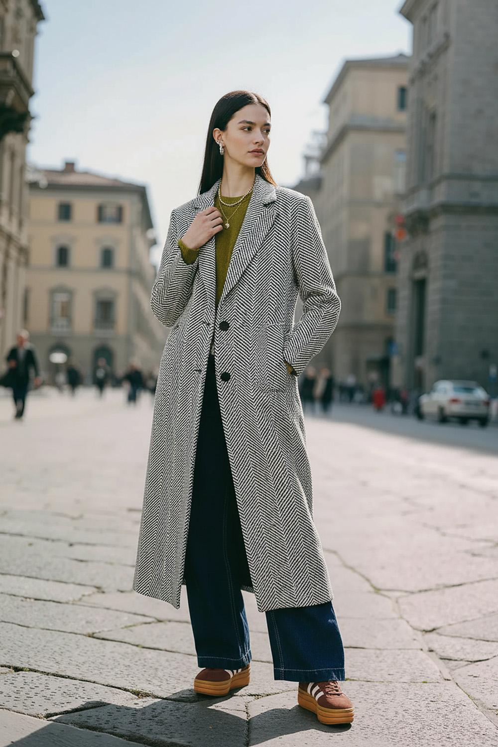 Jeśli szukasz płaszcza, który doskonale sprawdzi się zarówno zimą, jak i podczas pierwszych wiosennych dni, klasyczny płaszcz Break the Silence to wybór, który łączy styl, wygodę i uniwersalność. Szary płaszcz w klasycznym wzorze w jodełkę to idealna propozycja na przejściową pogodę – ogrzeje Cię, gdy jest chłodno, ale dzięki lekkiej konstrukcji świetnie sprawdzi się także w cieplejsze dni. Ten płaszcz to świetny wybór dla Ciebie, jeśli szukasz modnej i ponadczasowej propozycji, która pozostanie w Twojej szafie na wiele sezonów.