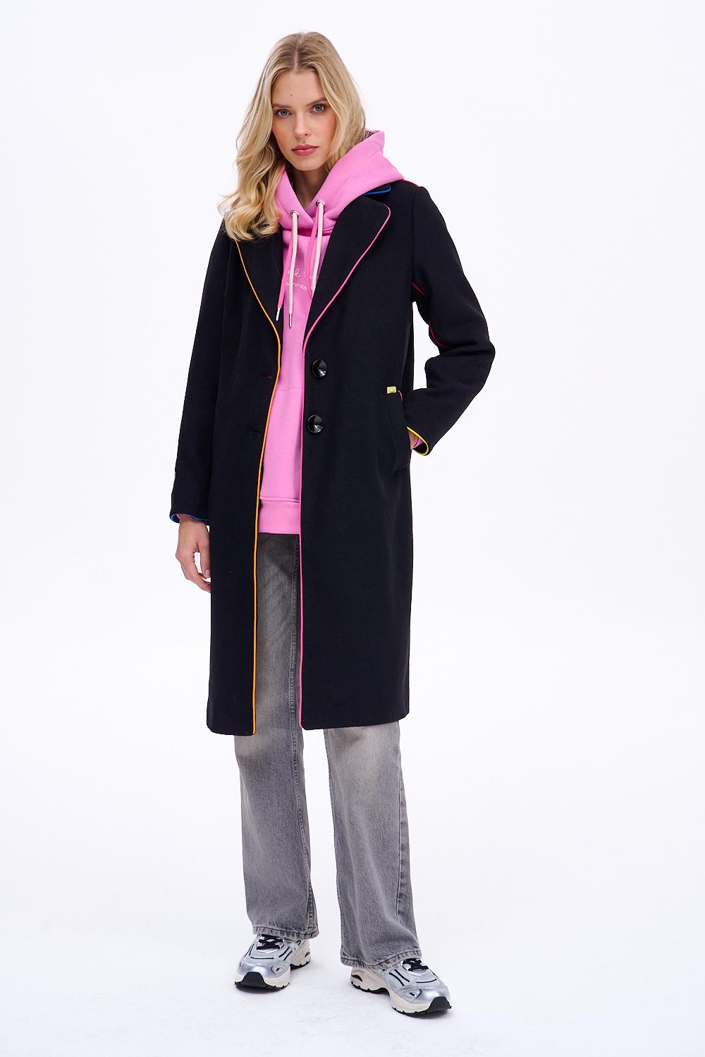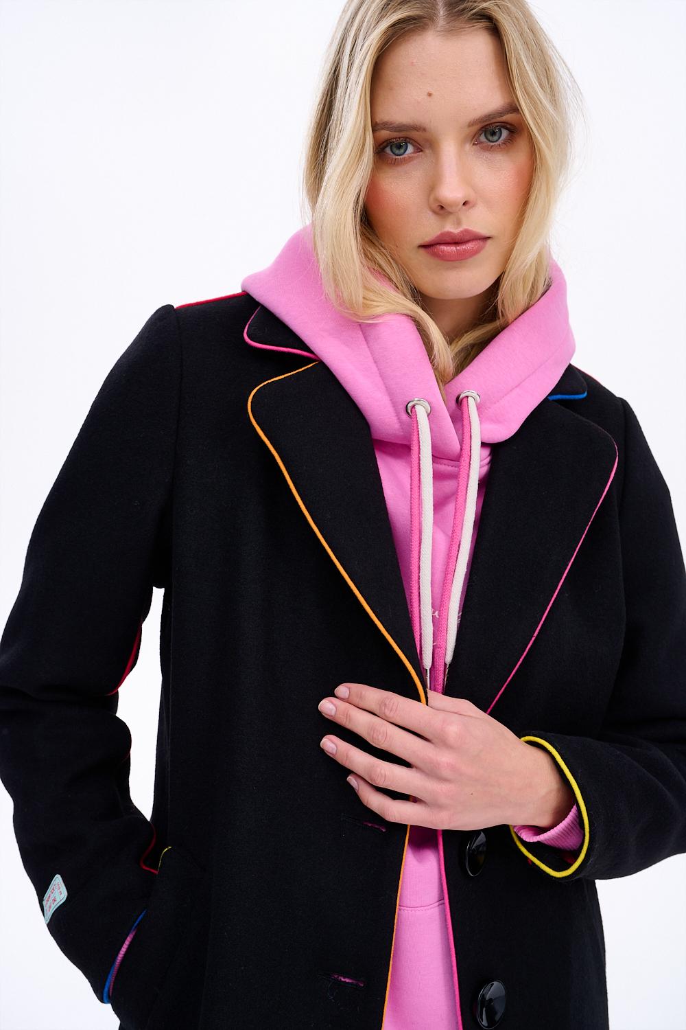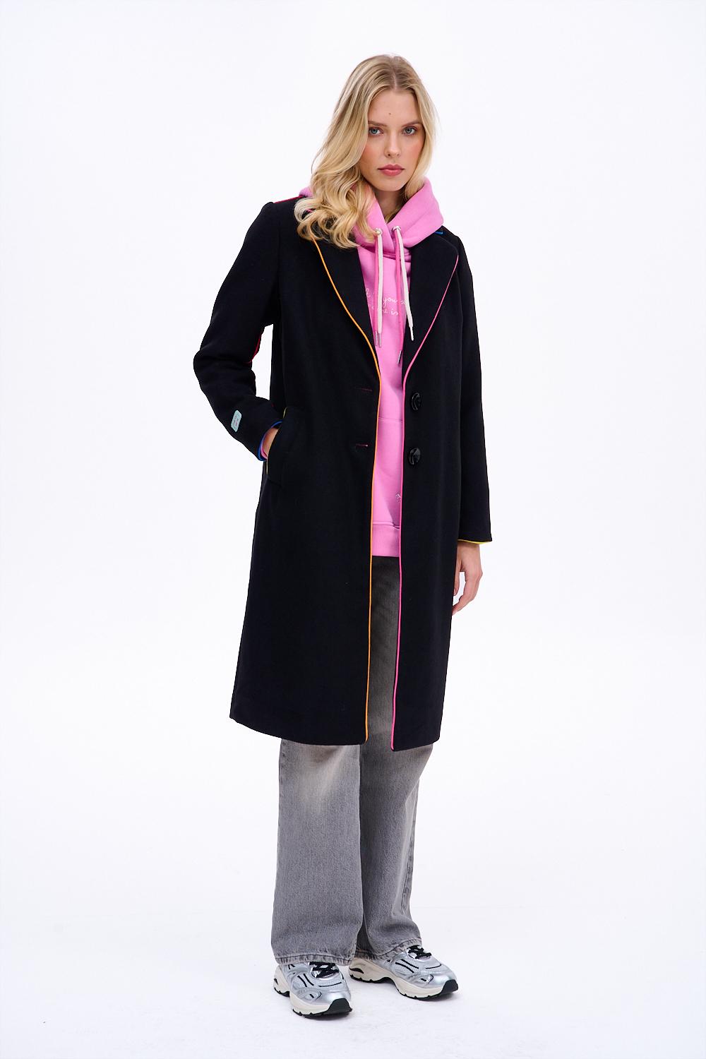 Minimalistyczny krój został przełamany feerią kolorów: fuksją, oranżem, kobaltem i neonową żółcią. Każdy szew, każda lamówka to przemyślany element, który podkreśla indywidualność i odwagę. Ten płaszcz mówi jedno: lubię klasykę, ale na własnych zasadach.