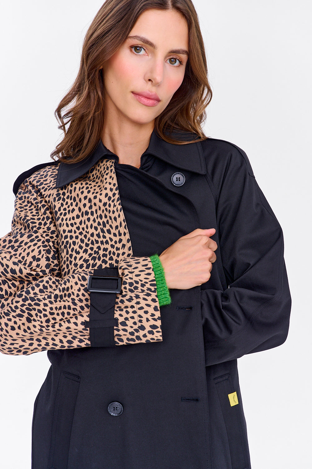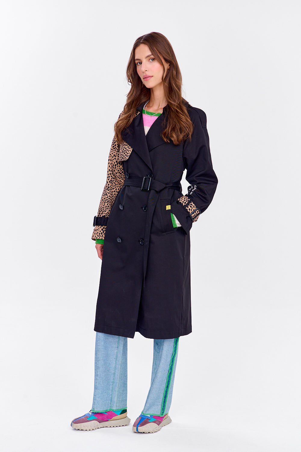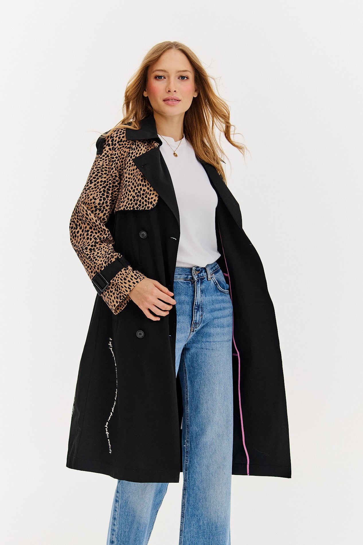 Klasyczny trencz Midnight Roar to odważna interpretacja klasycznego płaszcza, która nie zna kompromisów. Czerń połączona z energetycznym printem w panterkę tworzy look nie do przeoczenia – idealny dla #naokogirl, która wie, czego chce i nie boi się wyrażać siebie. Nadruki z inspirującymi hasłami dodają mu wyjątkowego charakteru i mocy – bo moda może być Twoją codzienną deklaracją.