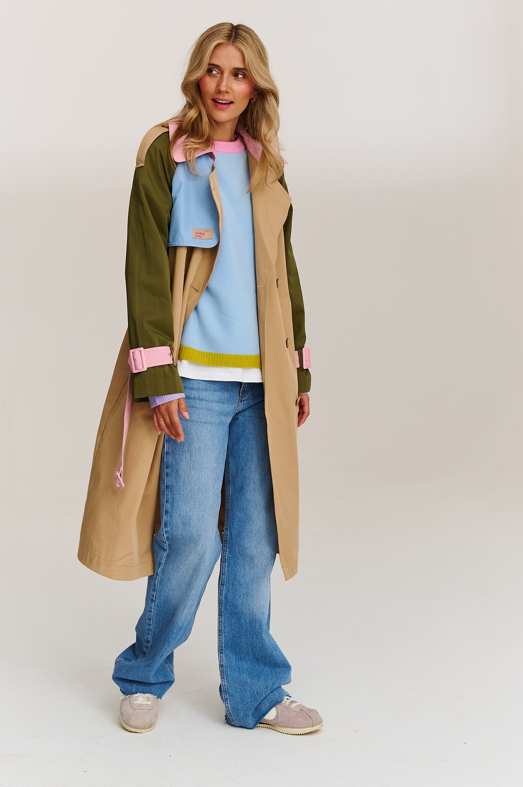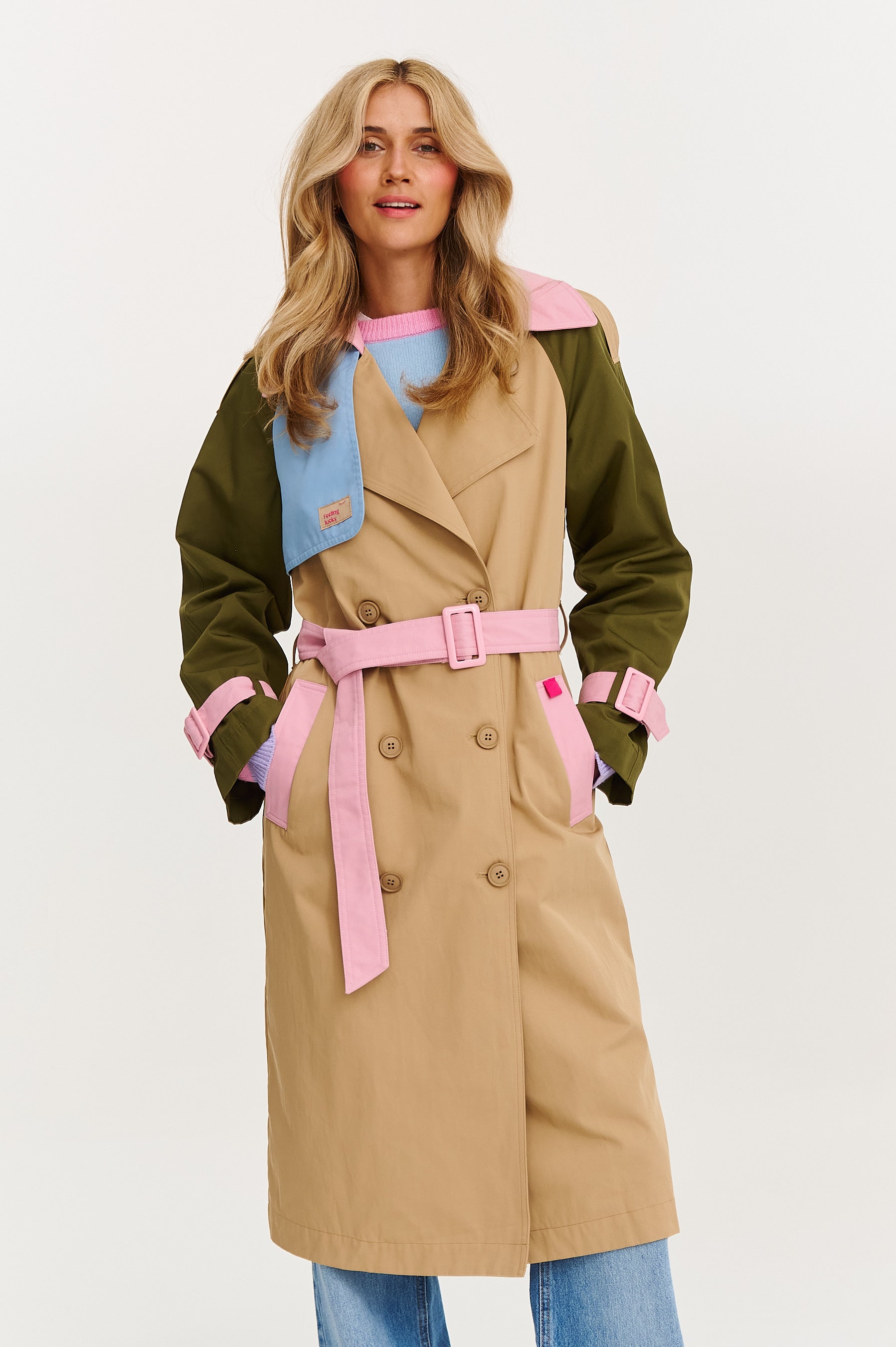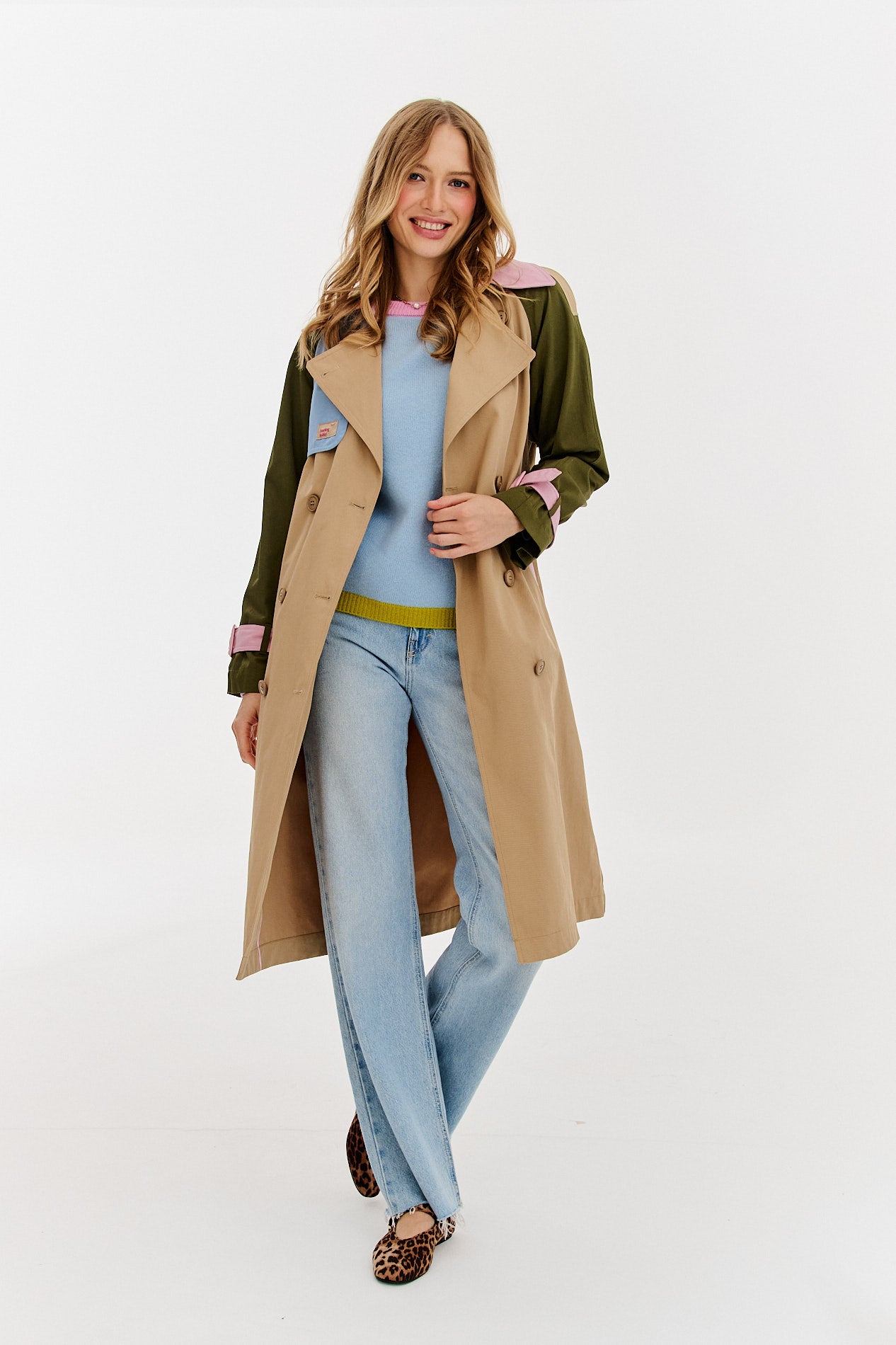 Klasyczny trencz Wanderpatch to nowoczesne podejście do ponadczasowego fasonu. Beżowa baza przełamana została kontrastującymi wstawkami w odcieniach zieleni, pudrowego różu i błękitu, tworząc look, który łączy klasykę z charakterem. To trencz dla dziewczyny, która lubi klasykę – ale nigdy nudną. Stylowy, wygodny i nieoczywisty, podbije każdą miejską ulicę i jesienny park.