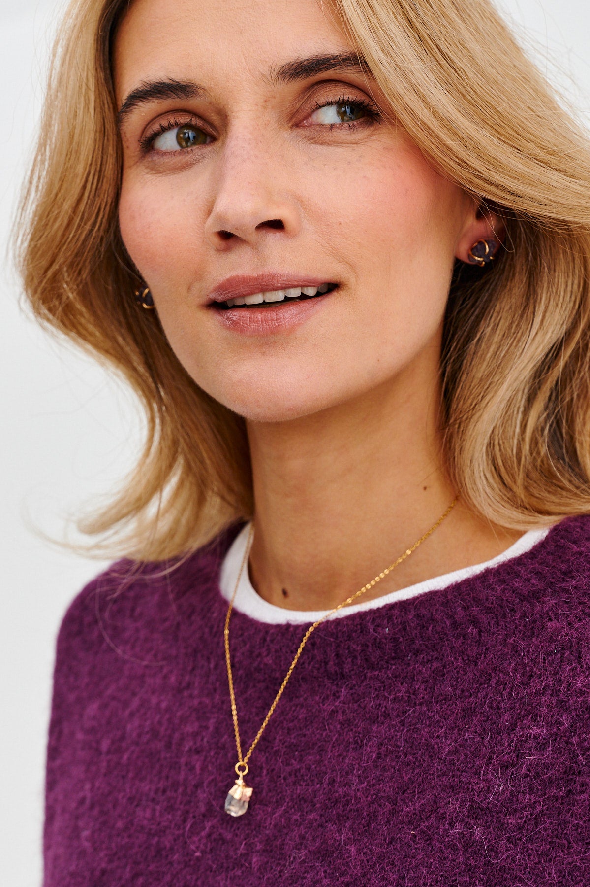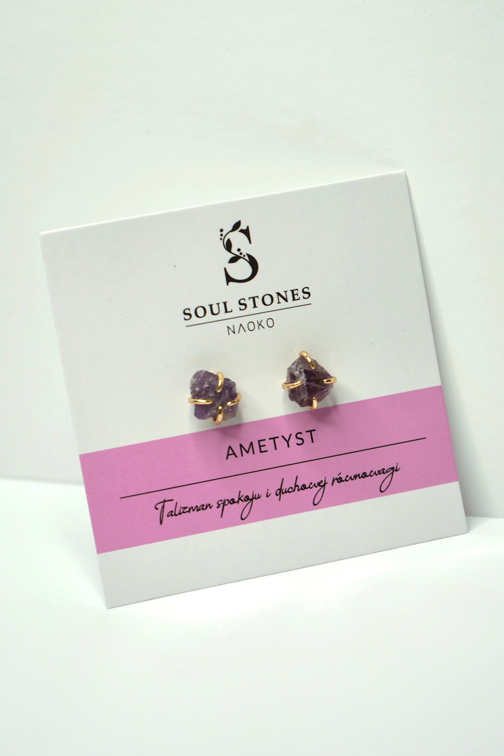 Kolczyki w złotym kolorze subtelnie podkreślają wyjątkowe właściwości ametystu. Ich uniwersalny design sprawia, że pasują zarówno do minimalistycznych stylizacji, jak i bardziej wyrazistych zestawów. Soul Stones Amethyst to biżuteria, która emanuje spokojem i elegancją, stając się Twoim osobistym talizmanem równowagi i piękna.