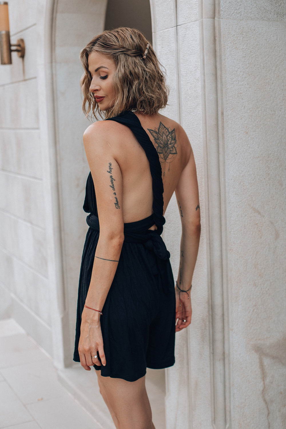 Kombinezon infinity mini Moon Raising to klasa sama w sobie. Dzięki wielu możliwościom wiązania, możesz założyć go na wiele okazji i nikt nawet nie pomyśli, że za każdym razem miałaś na sobie ten sam model! Tylko od Ciebie zależy na którą wersję się zdecydujesz! Do tego luźne, niczym nieskrępowane nogawki, które również mają szansę pokołysać się w tańcu.