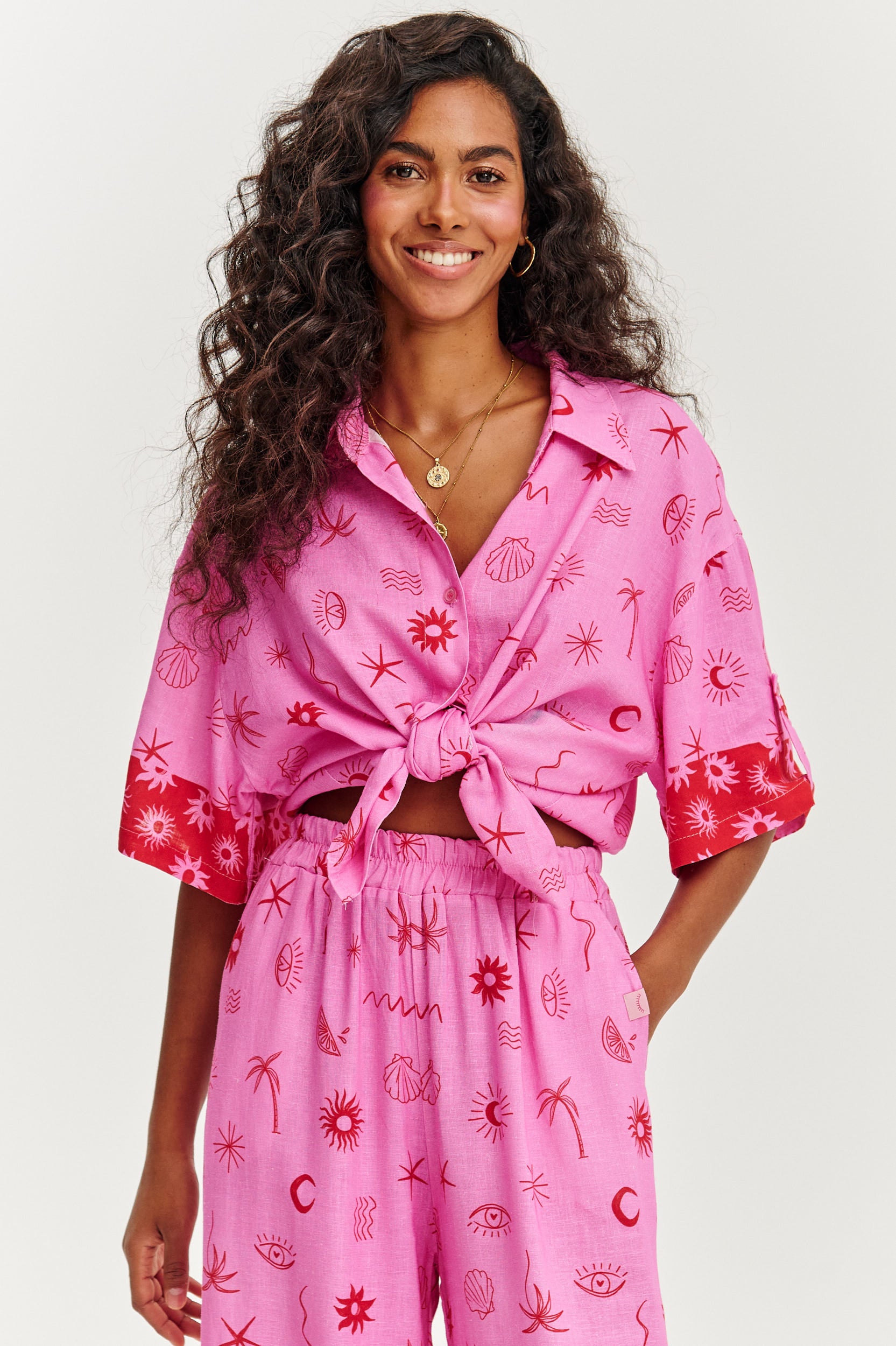 Z dodatkiem lnu, ta koszula zapewni Ci maksymalny komfort i wygodę w użytkowaniu. Noś ją z szortami do kompletu albo zarzuć na strój kąpielowy – Coastal Sorbet to look, który mówi za Ciebie!