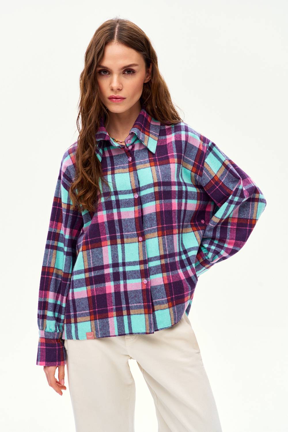 Koszula flanelowa Fresh Story udowadnia, że klasyczna kratka nie musi być nudna. Połączenie fioletu, błękitu i różu ożywi każdą jesienno-zimową garderobę, dodając jej świeżości i pozytywnej energii.