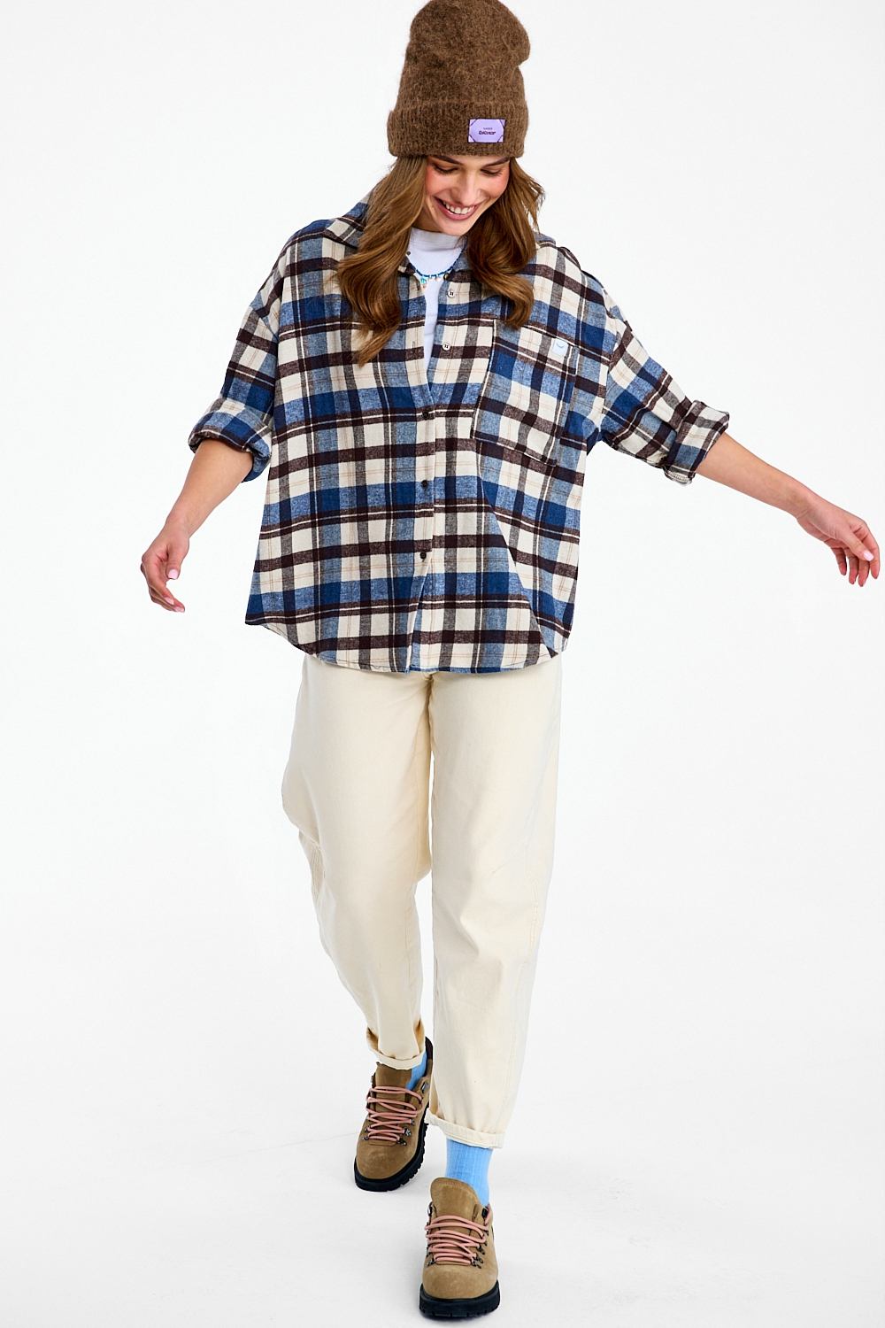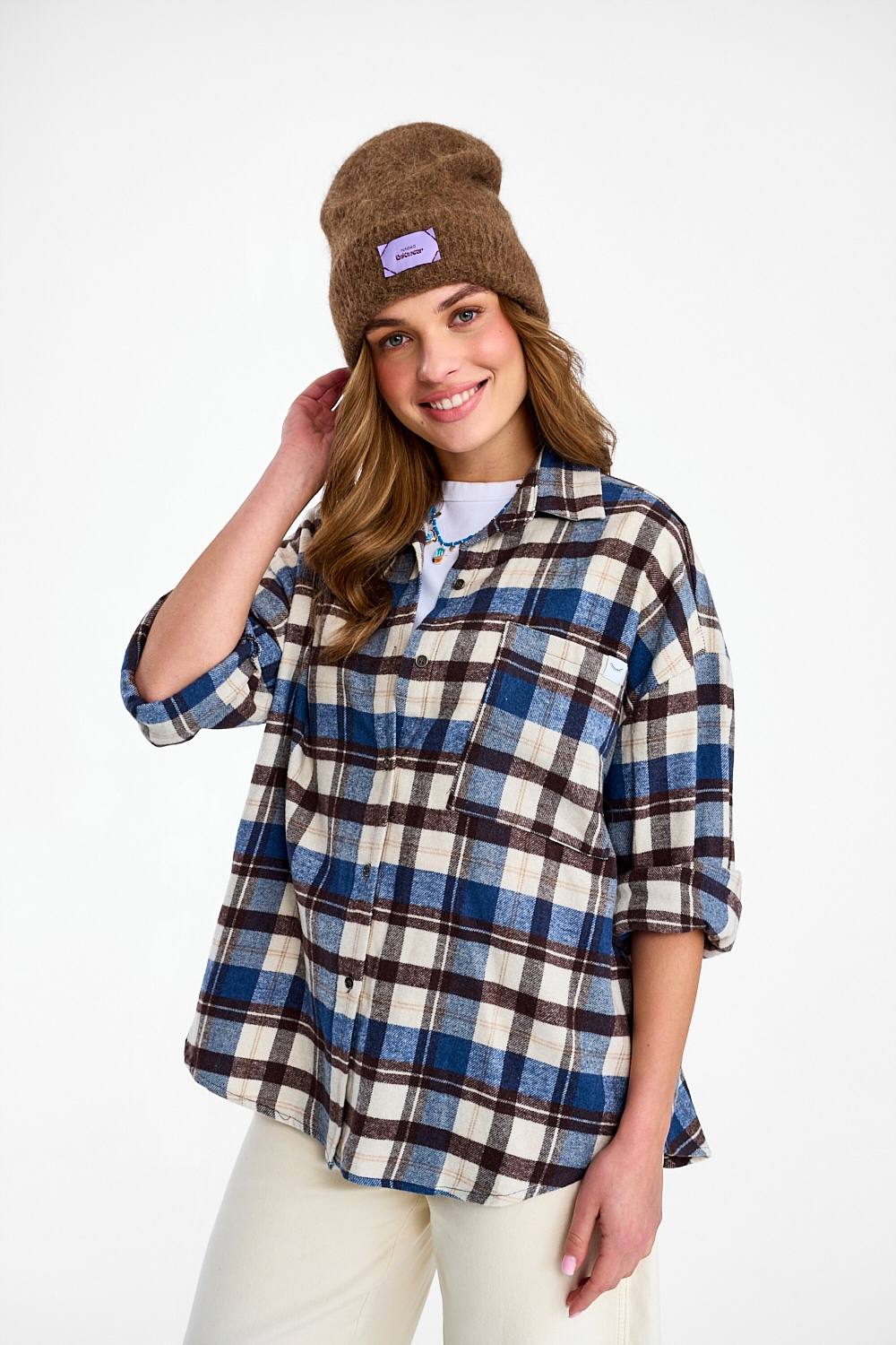 Koszula flanelowa Seattle Chic to klasyka gatunku w nowoczesnym wydaniu. Ponadczasowa krata w odcieniach granatu, bieli i brązu sprawia, że koszula jest niezwykle uniwersalna. Luźny krój oversize i miękka tkanina gwarantują swobodę ruchów.