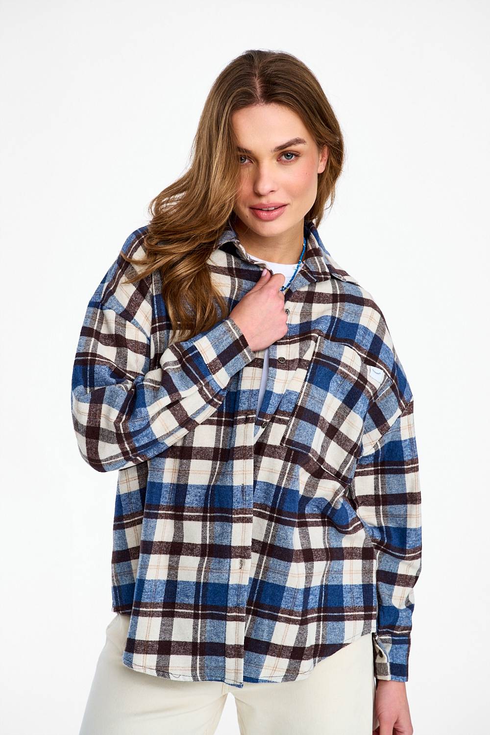 Koszula flanelowa Seattle Chic to klasyka gatunku w nowoczesnym wydaniu. Ponadczasowa krata w odcieniach granatu, bieli i brązu sprawia, że koszula jest niezwykle uniwersalna. Luźny krój oversize i miękka tkanina gwarantują swobodę ruchów, a naszywka z mottem przypomina, że życie jest za krótkie na nudne ubrania.