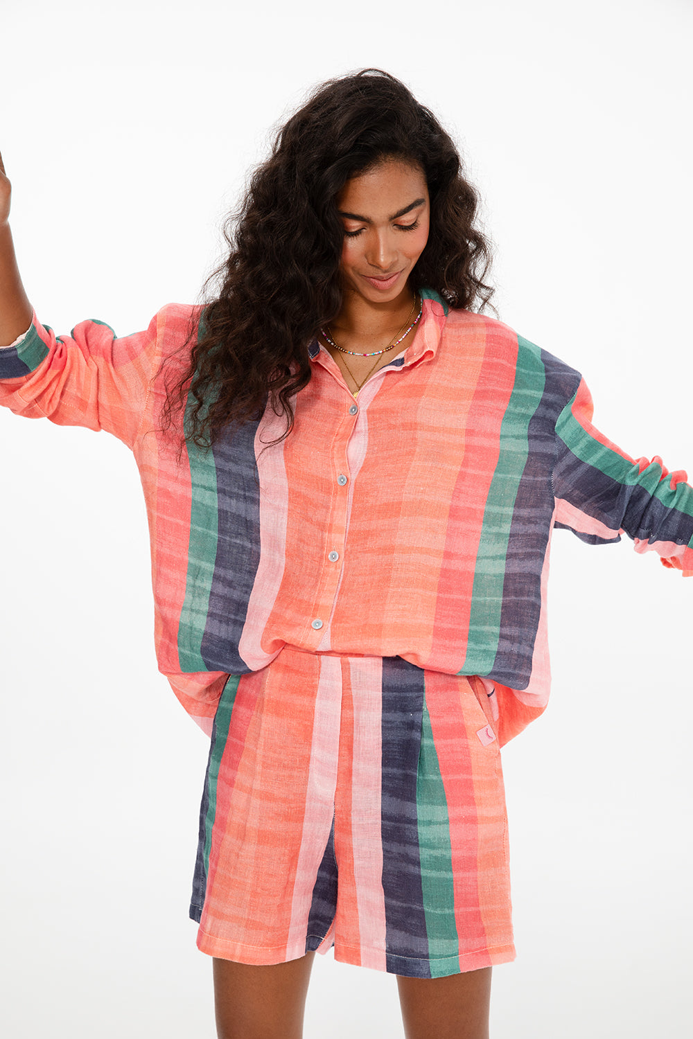 Noś ją luźno rozpiętą na kostium kąpielowy, zawiązaną w pasie do szortów lub jako odważny total look w zestawie ze spodniami – możliwości są nieskończone.
