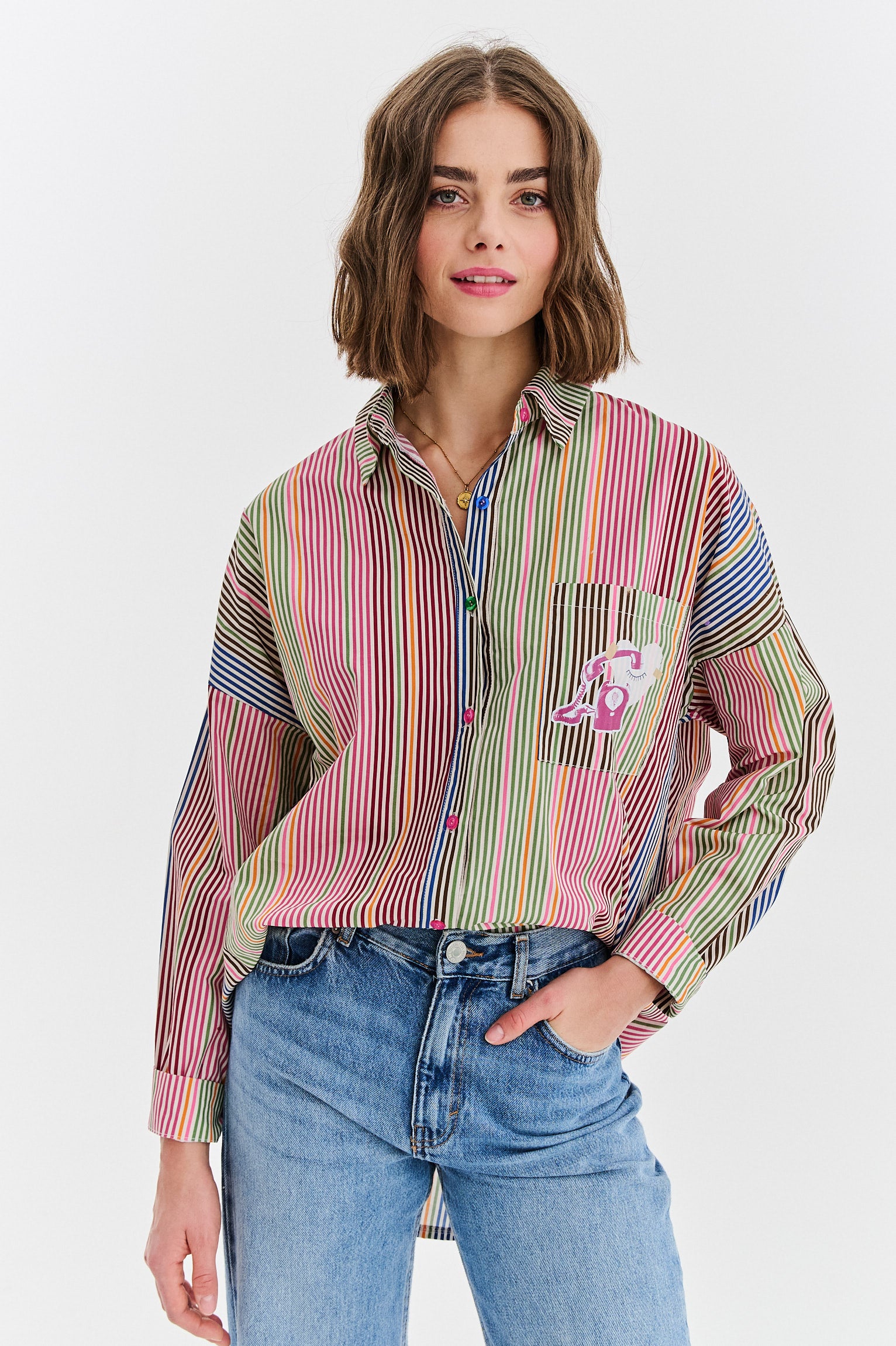 Koszula Rainbow Talk to propozycja dla wszystkich #naokogirls, które kochają modę w energetycznym wydaniu. Jej oversize'owy krój gwarantuje swobodę i wygodę, a kolorowe paski w tęczowych odcieniach sprawiają, że każdy look nabiera wyjątkowego charakteru.