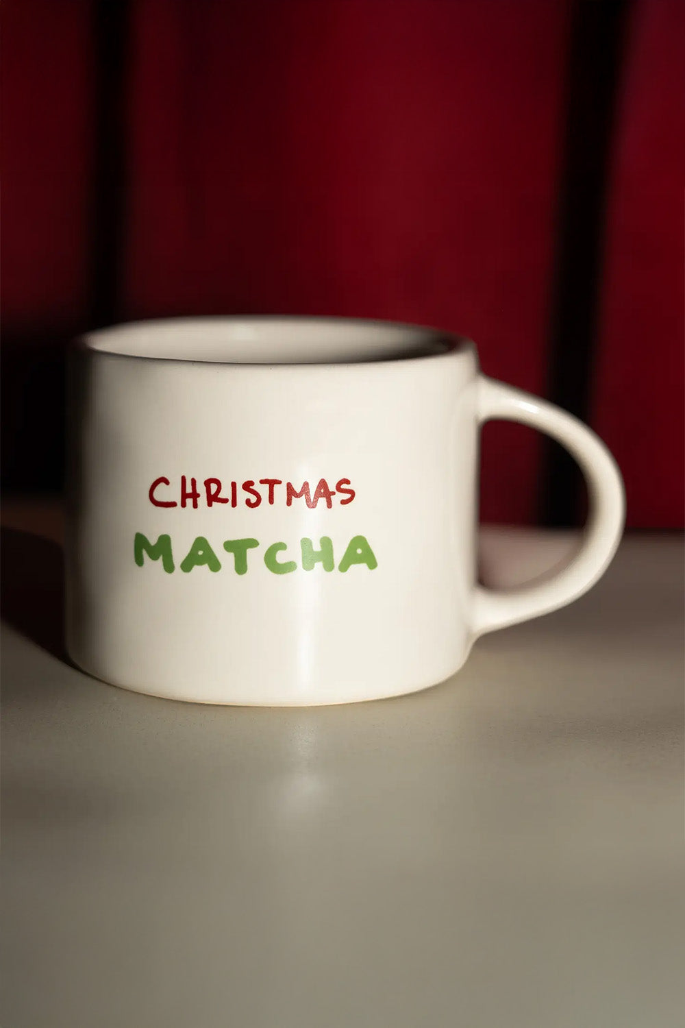 Kubek Christmas Matcha to idealny prezent świąteczny dla każdego miłośnika matchy. Przykuwa uwagę nie tylko zabawnym napisem, ale także nietuzinkową formą.